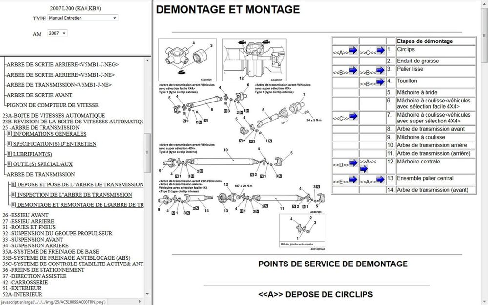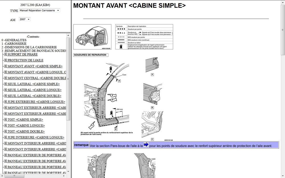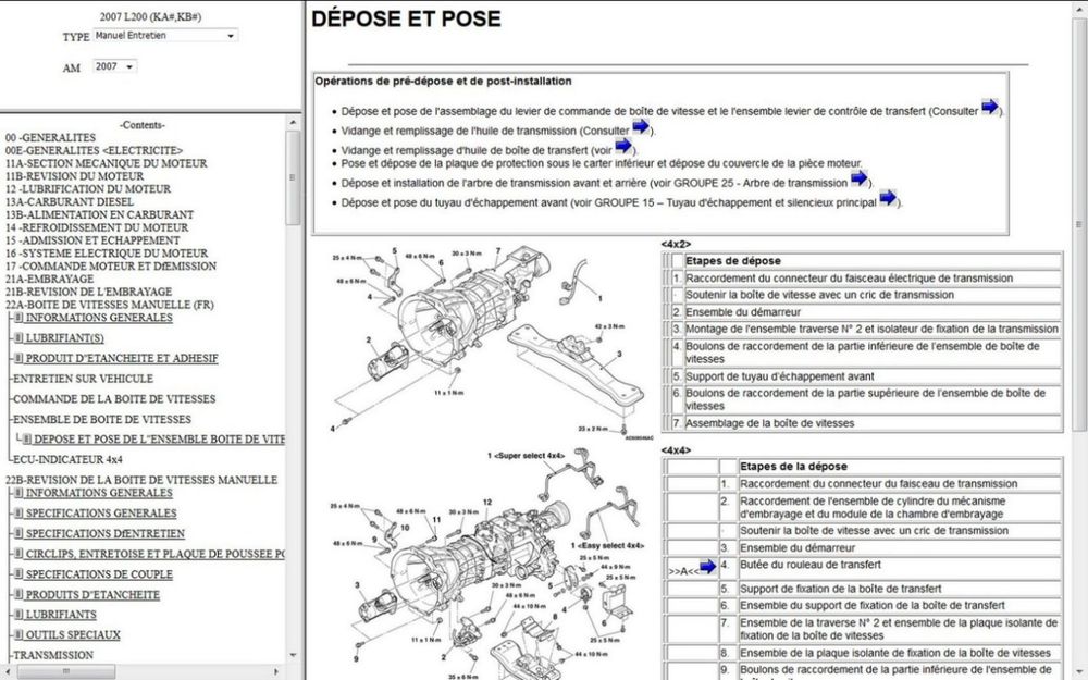 Manuel d'atelier Mitsubishi L200 - 2007 - 2009 en Français.