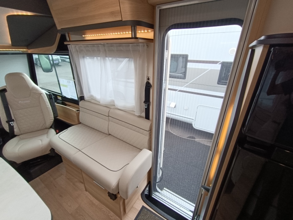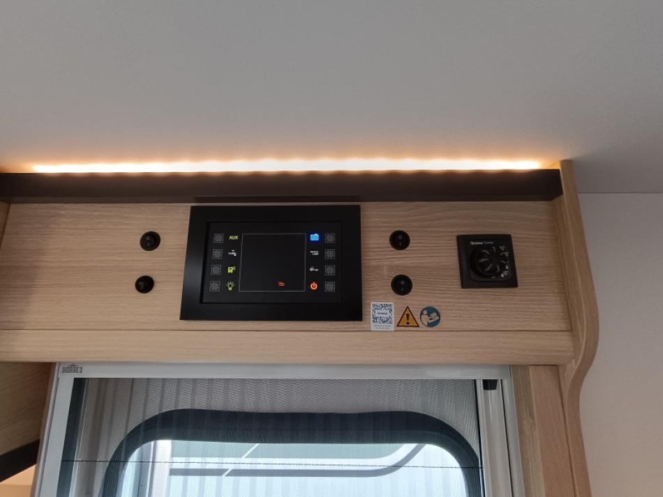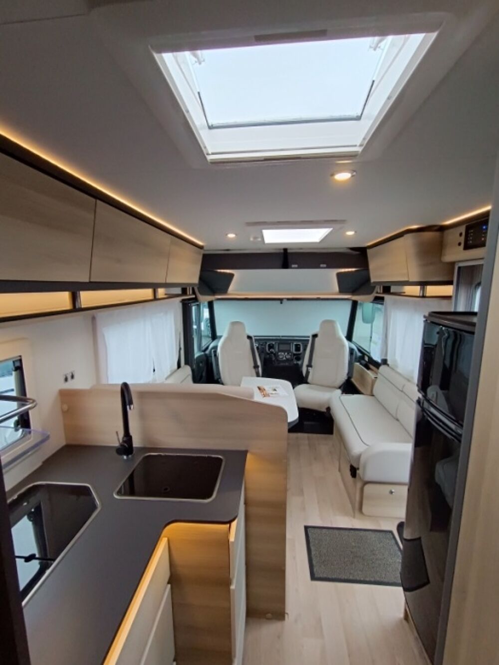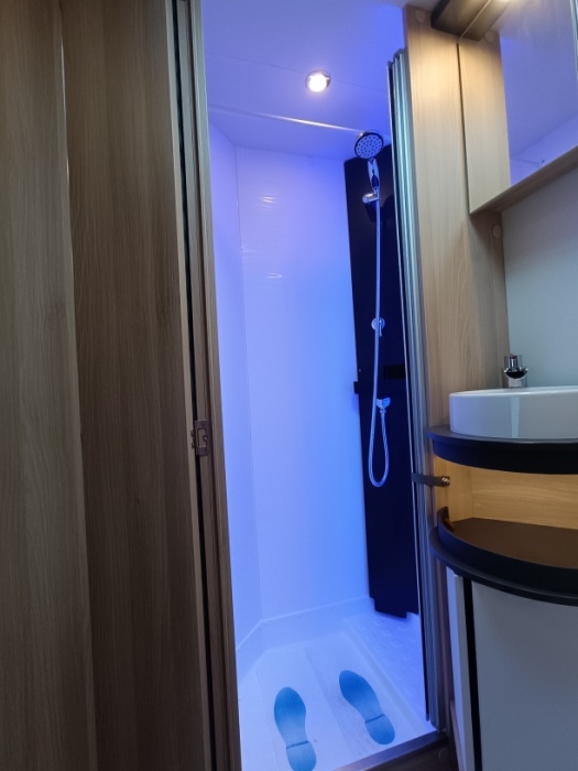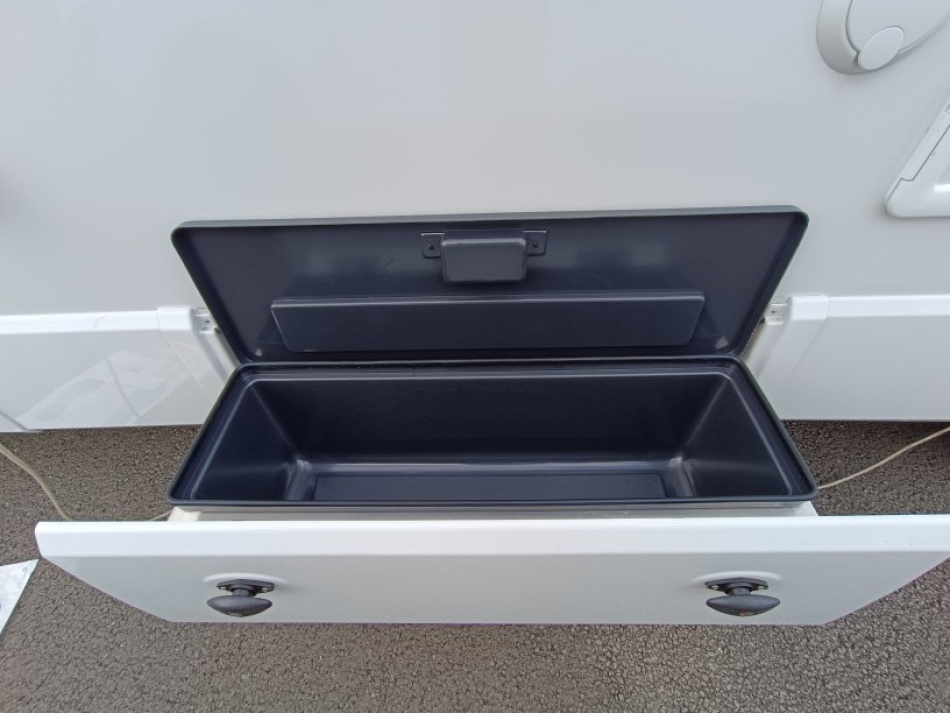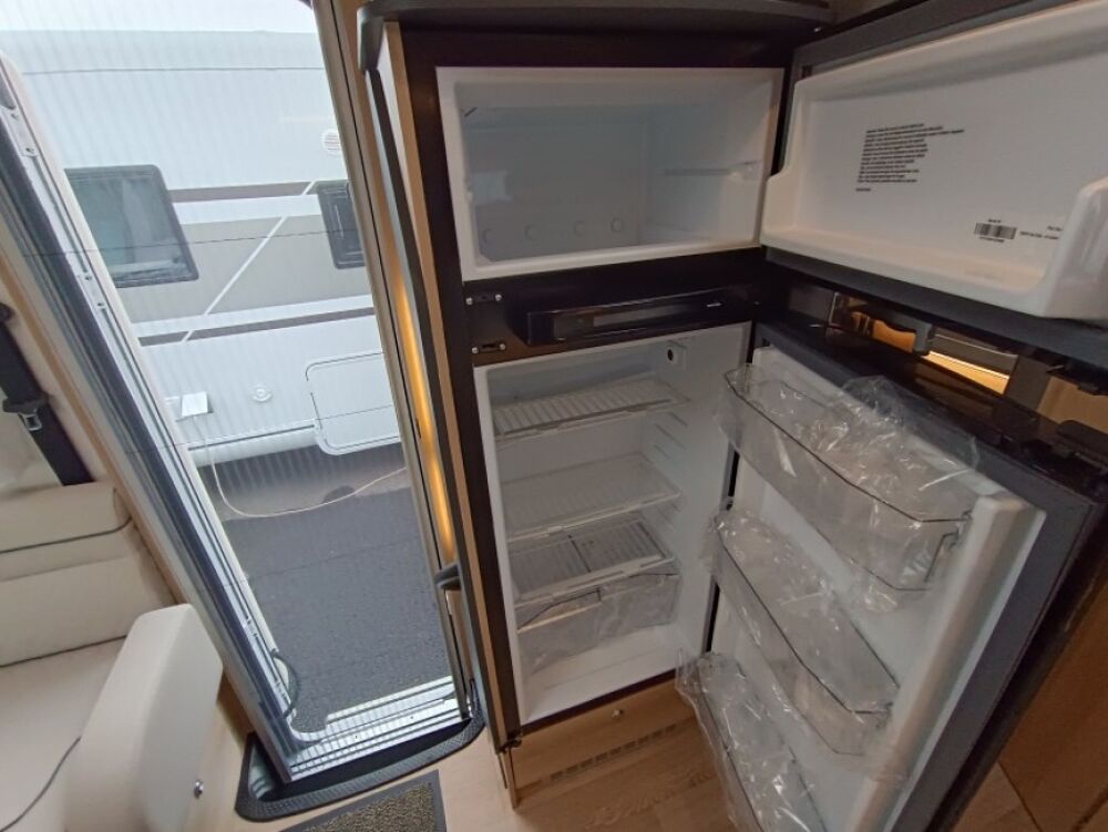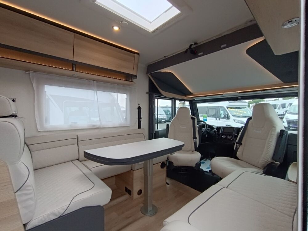 Options inclus :Tissu macadamia, réservoir eaux usées chaufé, tiroir extérieur, portillon de soute supplémentaire, kit lino, douchette extérieur...