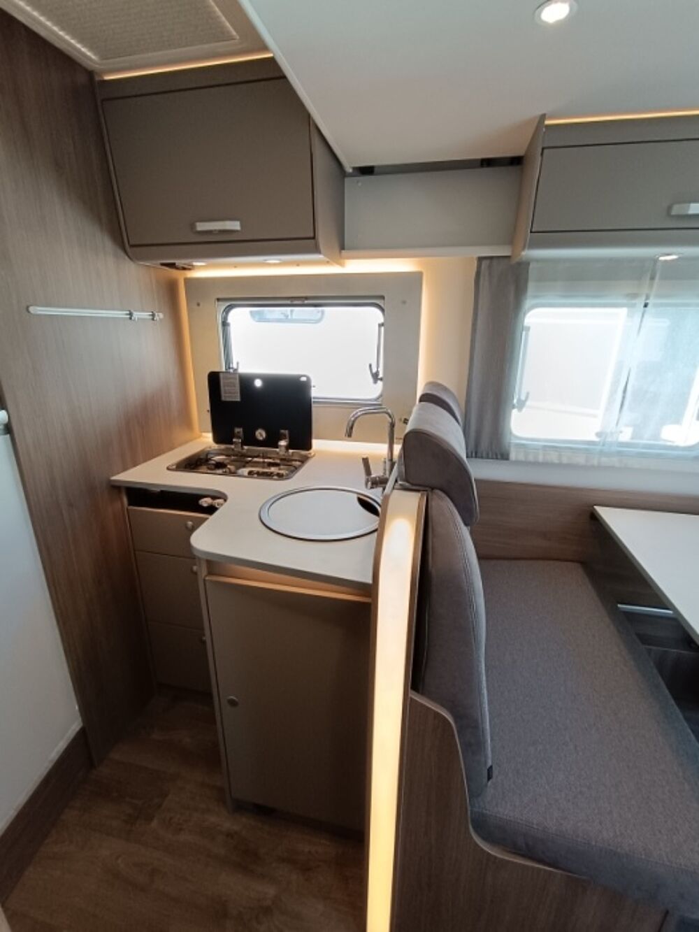 Un camping-car profilé spacieux, parfaitement adapté aux voyages en couple ou en famille, avec une touche de modernité et de raffinement.