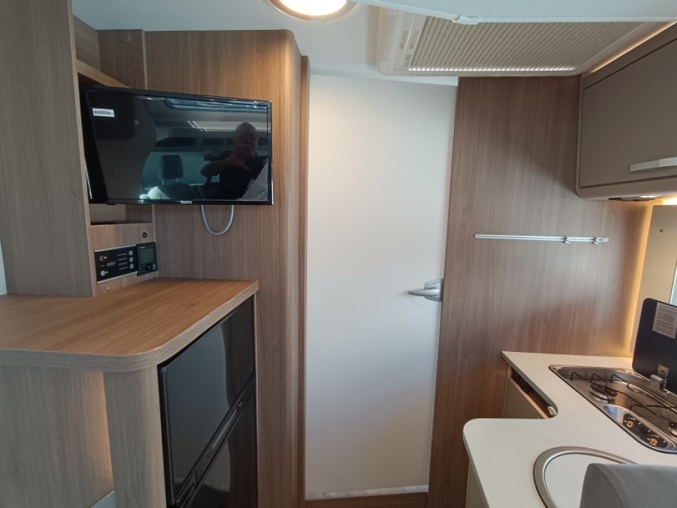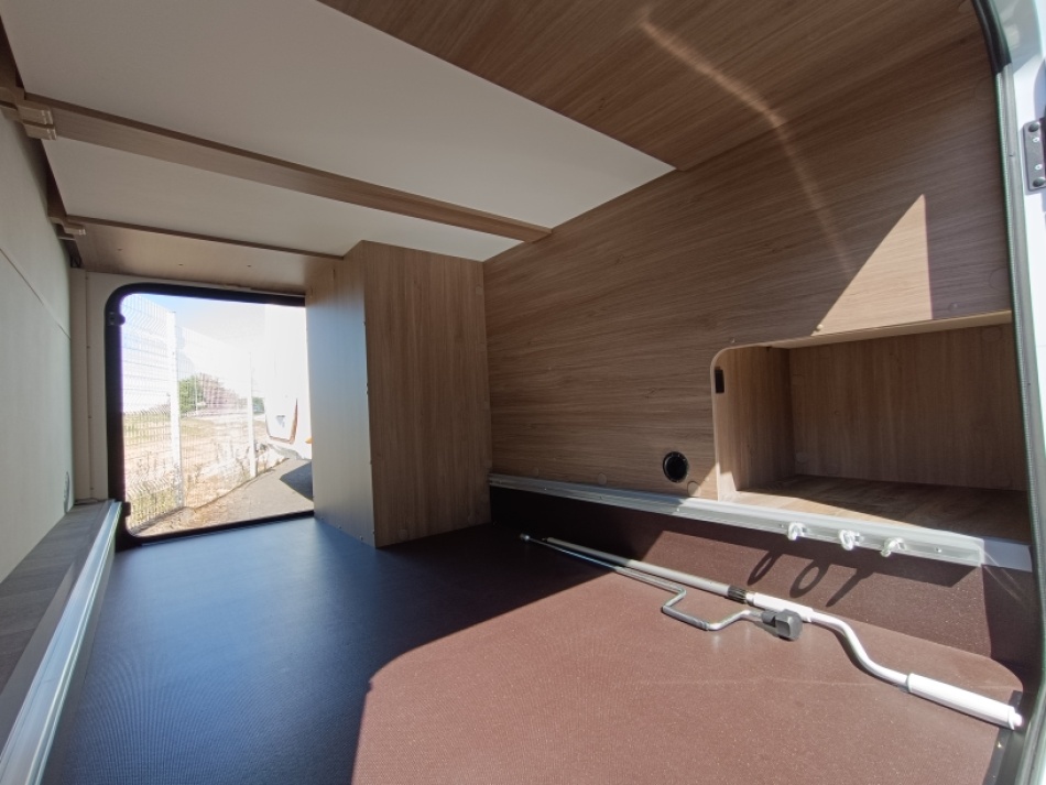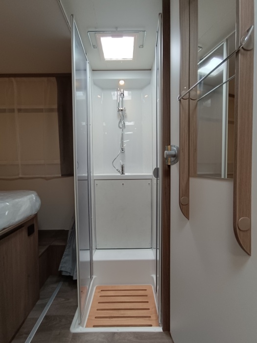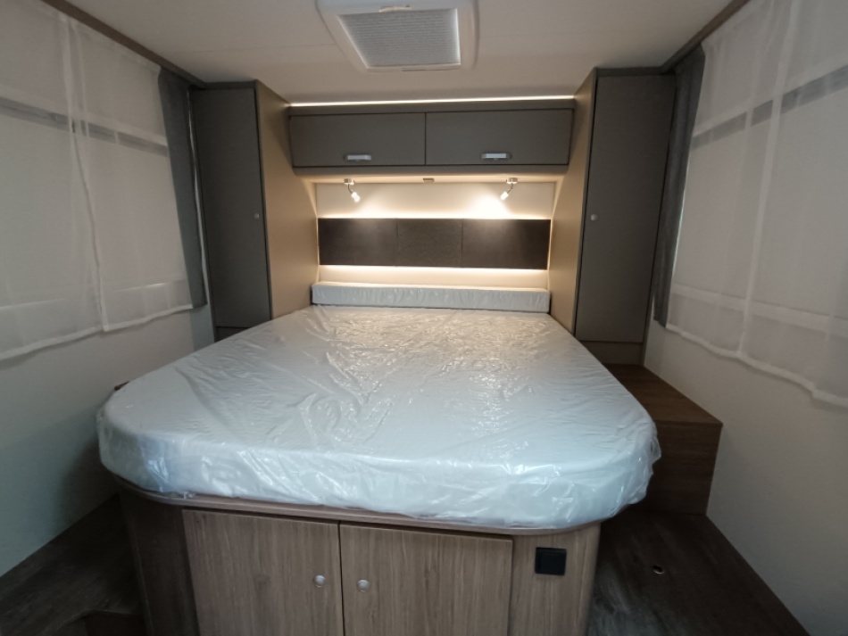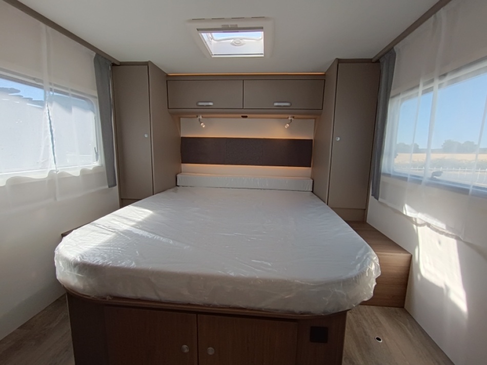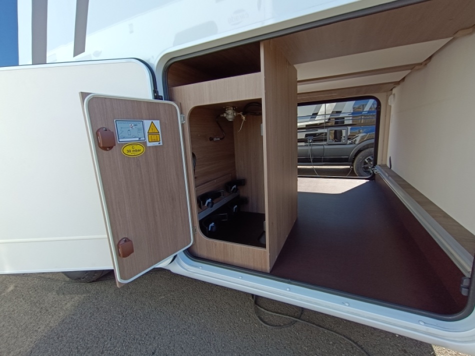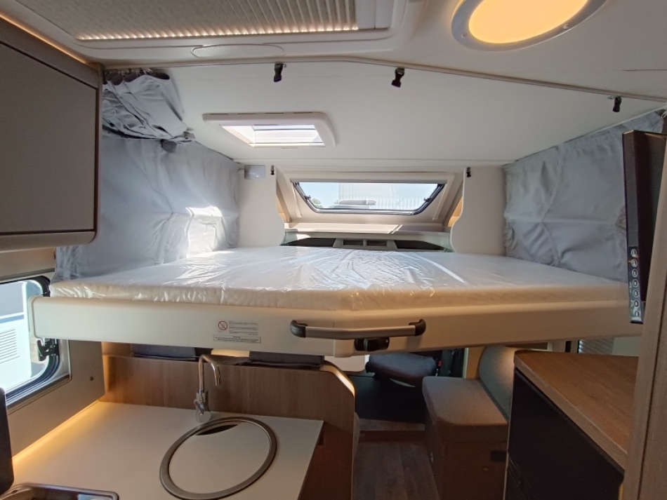 Options inclus: boite automatique, pack Tv (antenne satellite automatique, plus support plus TV, chauffage combi 6E, lit pavillon, caillebotis de douche, vérins de stabilisation plancher chauffant électrique espace de vie et une deuxième batterie cellule de 95 Ah.