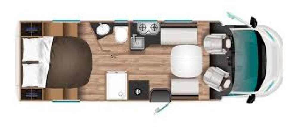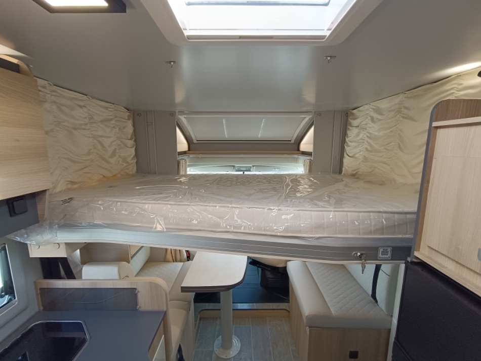 Couchages : 4 (lit transversal arrière: 197 x 142 cm, lit pavillon: 126/106x192).