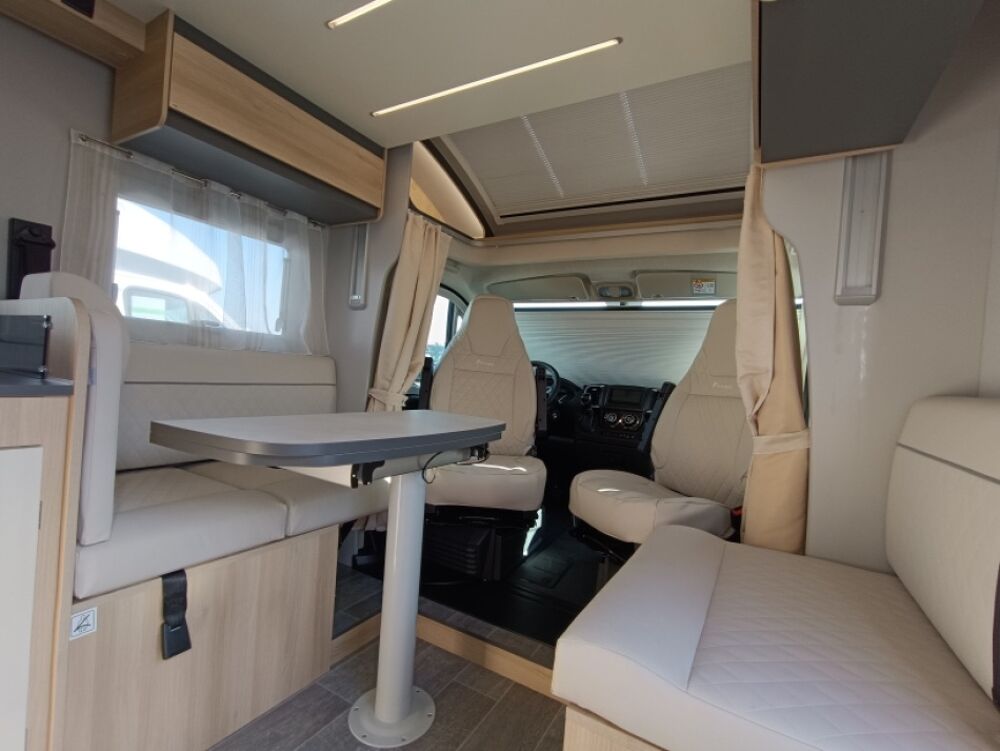 Découvrez le nouveau Itinéo PM 740 millésime 2025, un camping-car profilé alliant confort, modernité et maniabilité, monté sur le porteur Peugeot Boxer dernière génération.