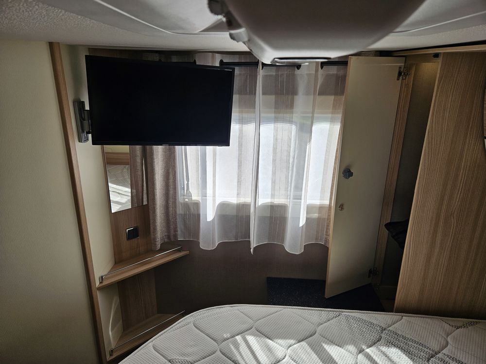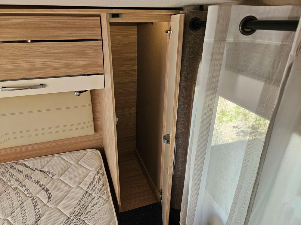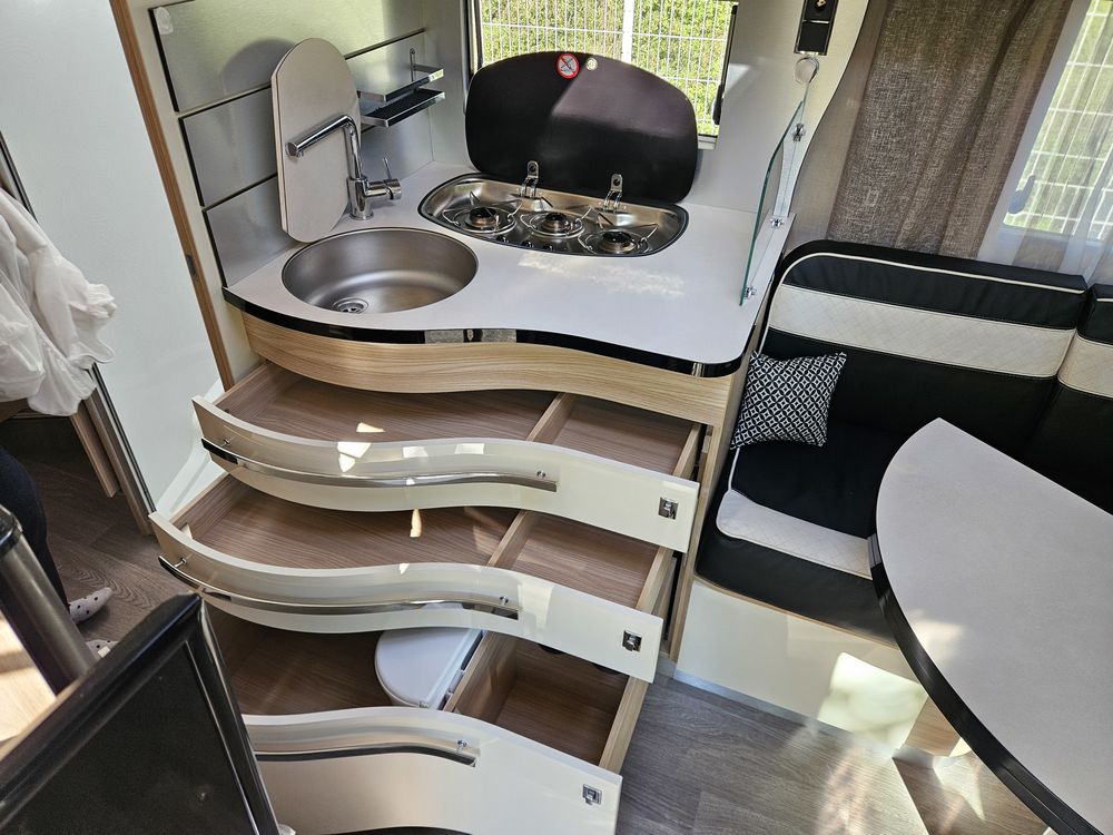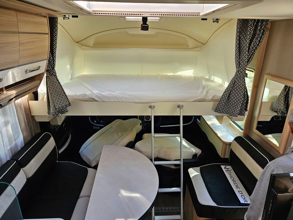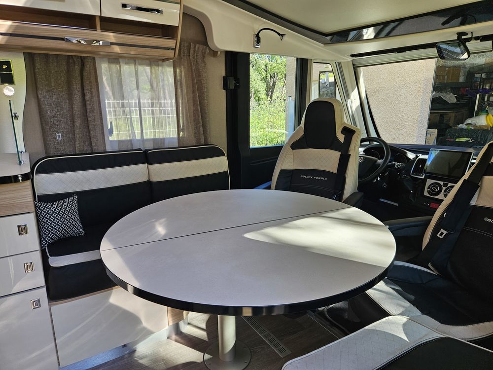 Un chauffage Truma 6 pour des nuits au chaud même en hiver. Store extérieur NOIRE, pour profiter de l extérieur. La sellerie en cuir et siéges Aguti pour un confort haut de gamme à bord.