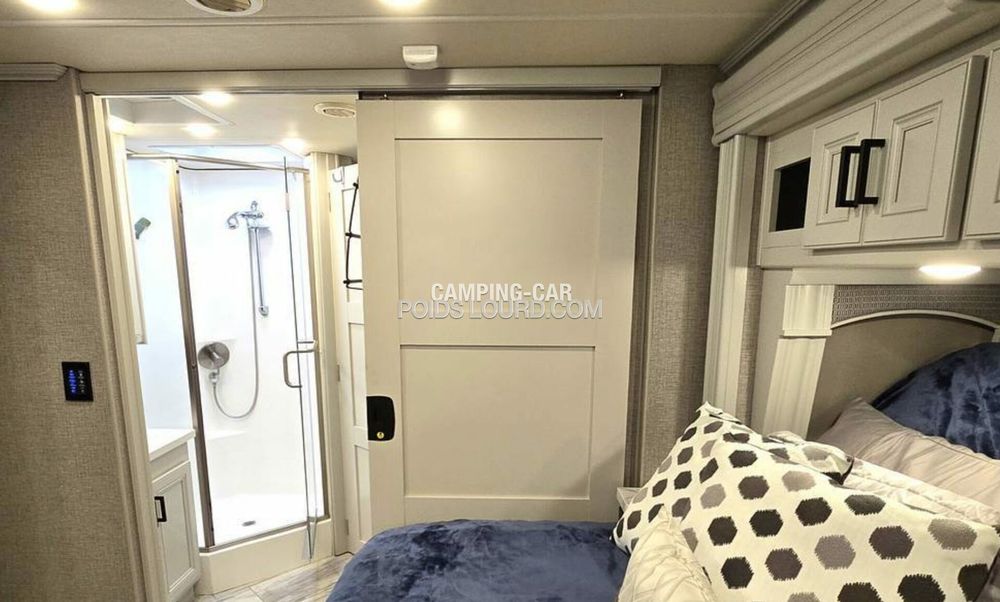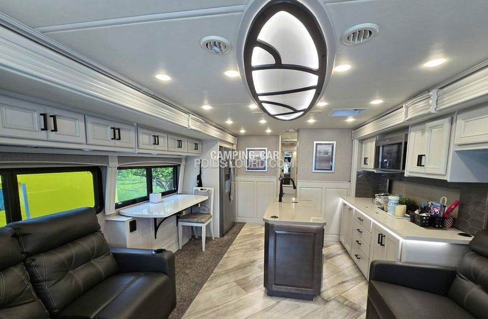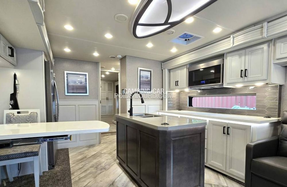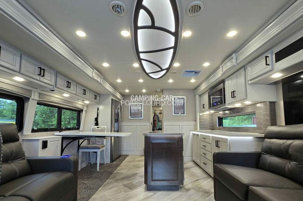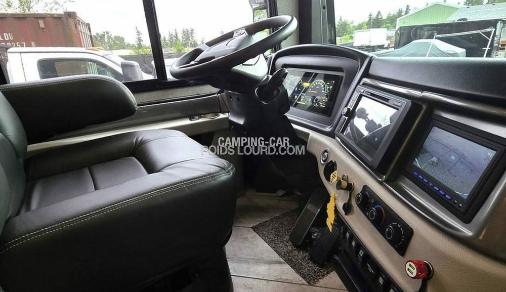 Le Fleetwood Discovery 36Q est un motorhome haut de gamme conçu pour offrir confort, espace et performances sur la route. Avec son châssis Freightliner et son moteur Cummins Diesel, ce véhicule allie puissance et fiabilité, idéal pour les voyages longue distance en toute sérénité. Son aménagement intelligent et ses finitions luxueuses en font un choix privilégié pour les amateurs de road-trip premium.