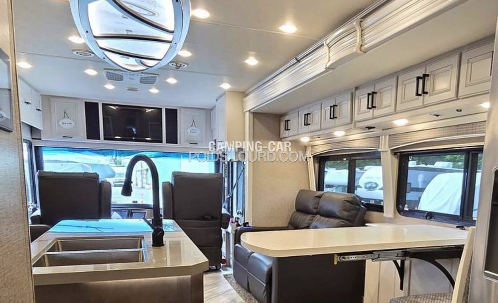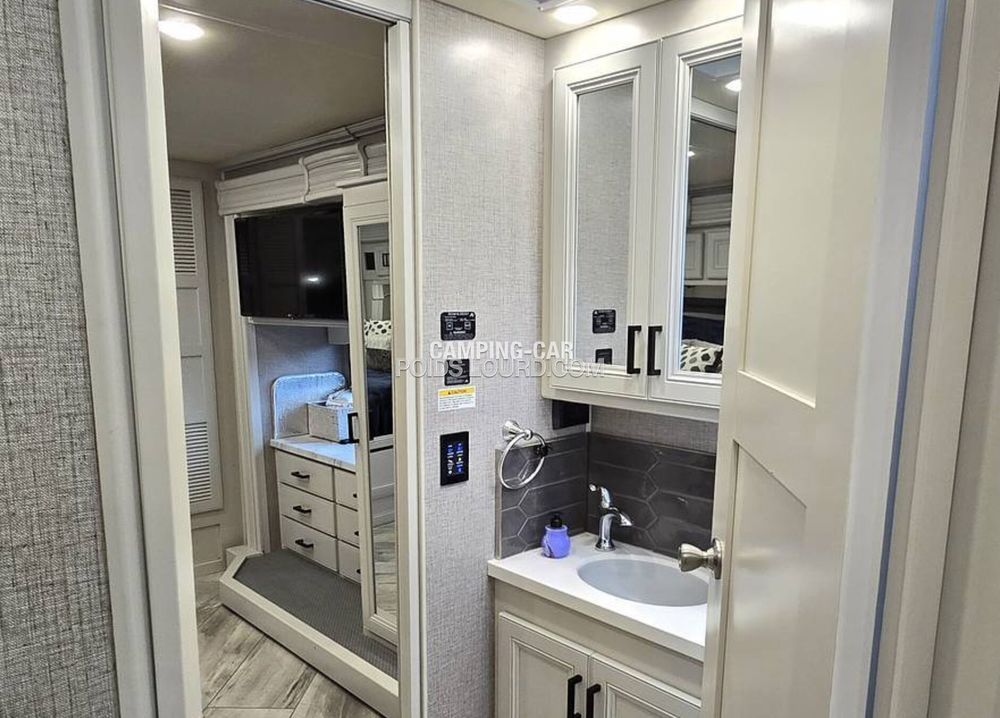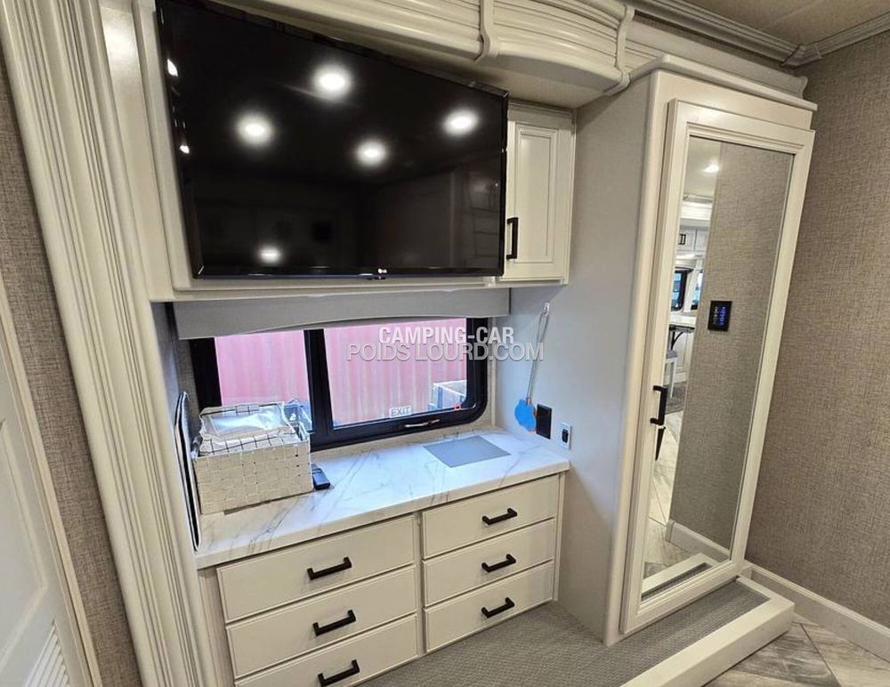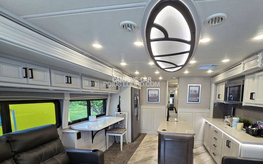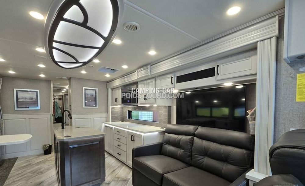 Le Fleetwood Discovery 36Q est un motorhome haut de gamme conçu pour offrir confort, espace et performances sur la route. Avec son châssis Freightliner et son moteur Cummins Diesel, ce véhicule allie puissance et fiabilité, idéal pour les voyages longue distance en toute sérénité. Son aménagement intelligent et ses finitions luxueuses en font un choix privilégié pour les amateurs de road-trip premium.