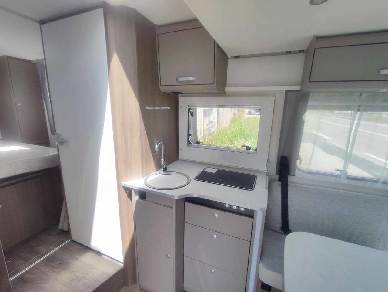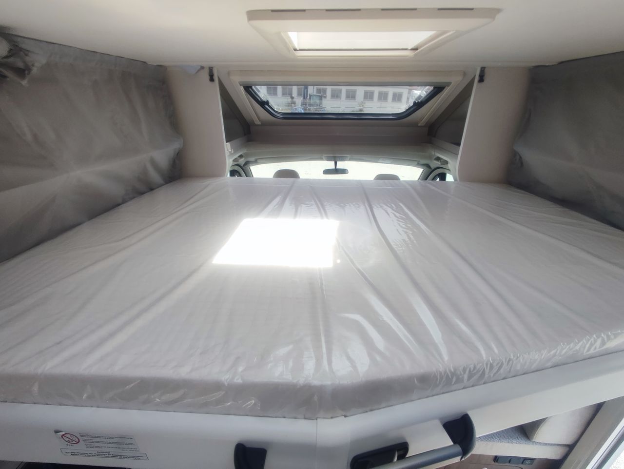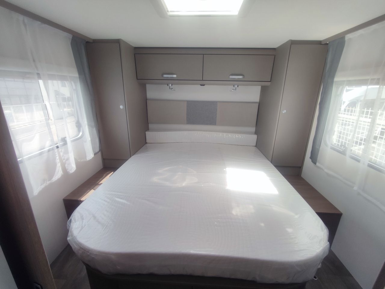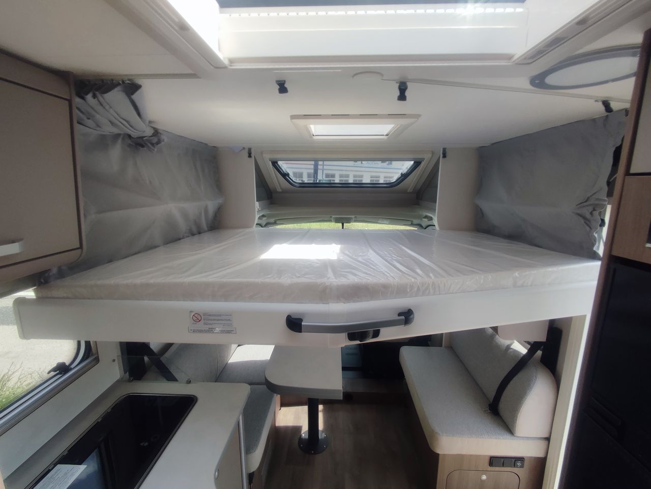 Option incluses : *PACK CONFORT , Boite automatique, Maxi lanterneau salon + Porte moustiquaire*, Préequipement TV + support TV + Préequipement Panneau solaire + Préequipement caméra de recul,Store plisse cabine + Lanterneau panoramique cabine, soute double accés, Réservoir d'eau usée isolée, couleur extérieur blanc glacier, pack optique 1 et 2, jante alu 16",