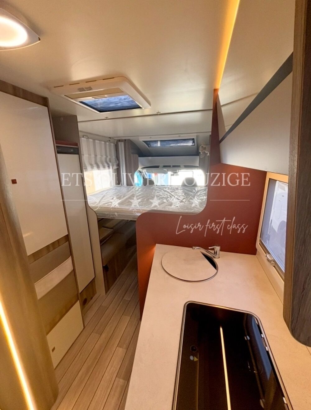 PACK KRONOS FORD 1€Motorisation 165 CVFeux diurnes 'High Series'Boîte à gants avec serrureHabillage intérieur et tableau de bord finition 'Trend'Pare-chocs et bas de caisse latérales peints couleur de la carrosseriePorte XL avec 2 points de fermeture, fenêtre et fermeture centraliséePanneau de contrôle CP plusCouvercle d'évier / planche à découperPanneau solaire 200W avec régulateur MPPTSkyroofStores occultants plissées cabineHousses de siège cabine