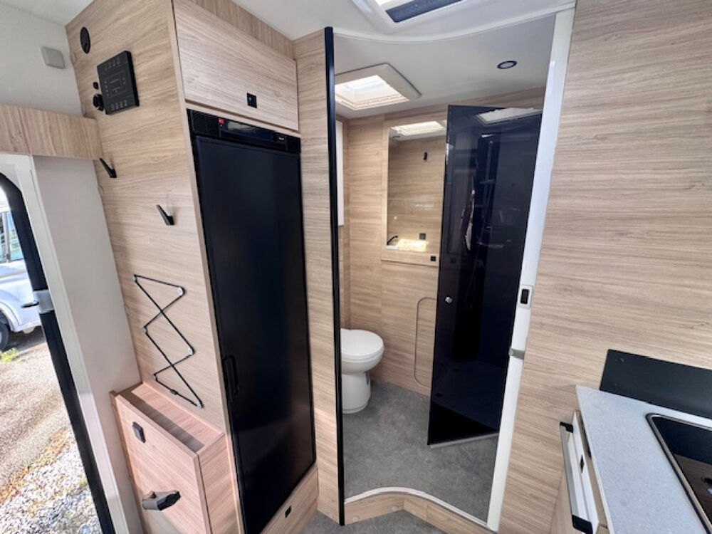 Boite automatique, Caméra de recul, Direction assistee, Double Airbag, Douchette extérieure, Eclairage extérieur, Eclairage LED, Embases de siège pivotantes, Fermeture centralisée, Lit pavillon électrique, Moustiquaire de porte cellule, Panneau solaire, Porte cellule vitrée, Prise de gaz extérieure, Régulateur de vitesse, Rétroviseurs électriques et dégivrants, Salon face/face, Sièges cabine réglables en hauteur, Store extérieur, Stores plissés cabine, Verrouillage centralisé, Volet isotherme