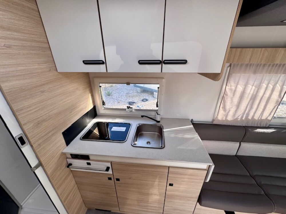 Cellule : Eclairage 100% led. Frigo a compression 140 litres. Capacite eau propre 105l, capacite eaux usées 100l. Chauffage gazole 4000w. Eclairage extérieur. Moustiquaire porte cellule. Evier et deux feux gaz piezzo inox. Chauffage sur carburant .