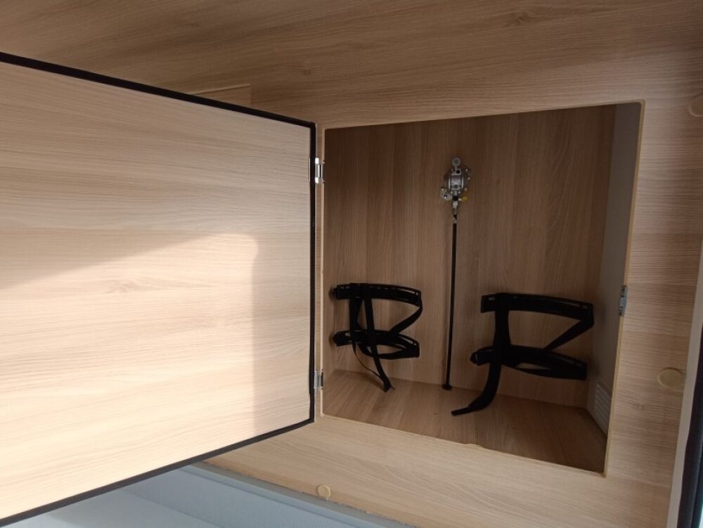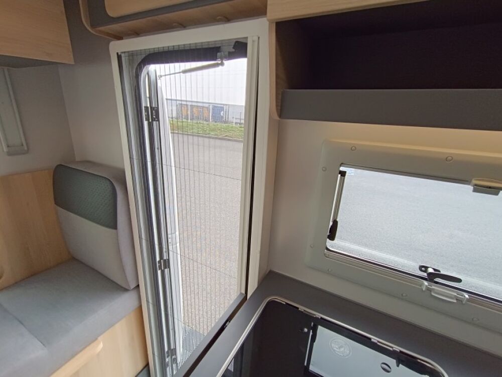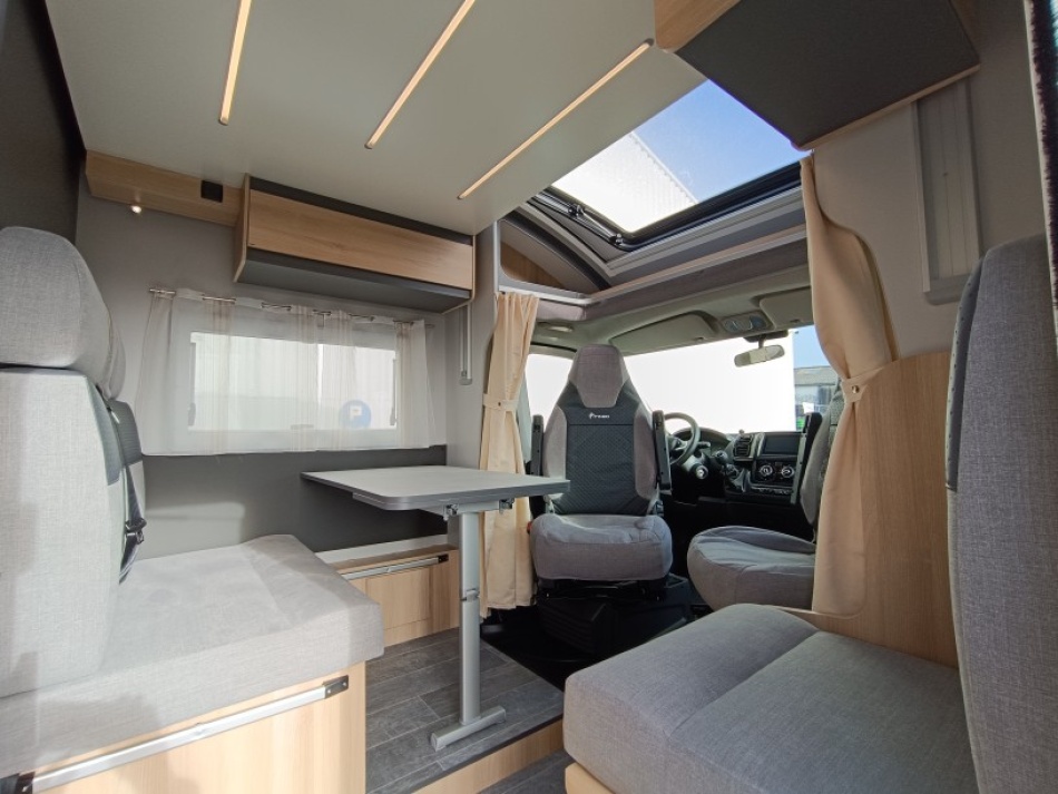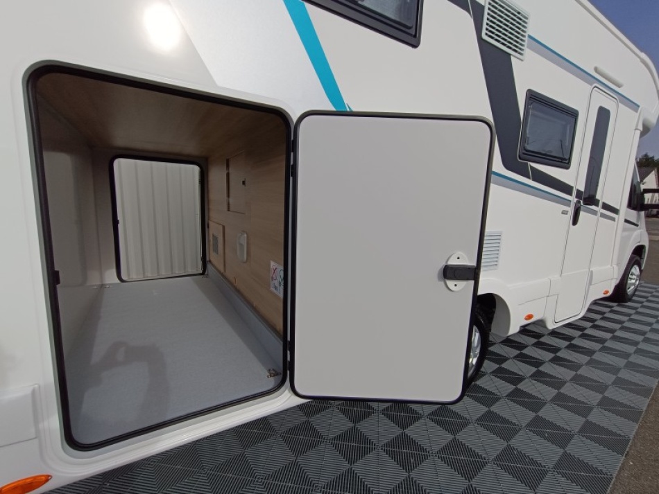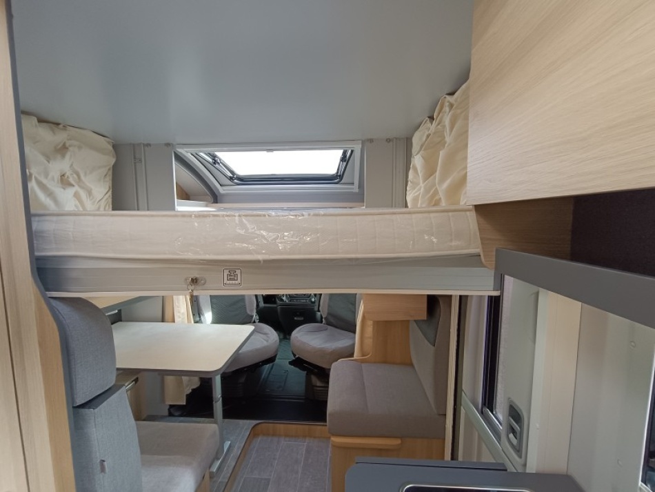 Le lit de pavillon électrique est super pratique pour accueillir des invités sans modifier la dînette. Et côté autonomie, le frigo AES 136 L, les nombreux rangements et la soute généreuse en font un modèle très fonctionnel, que ce soit pour des escapades de week-end ou des road-trips plus longs.