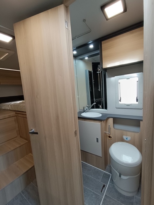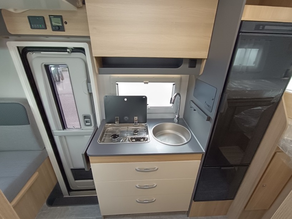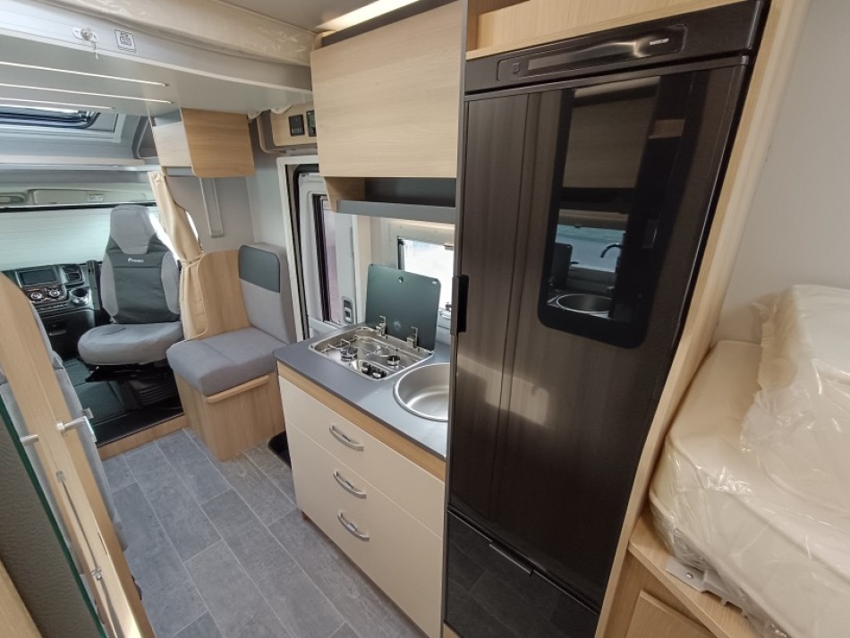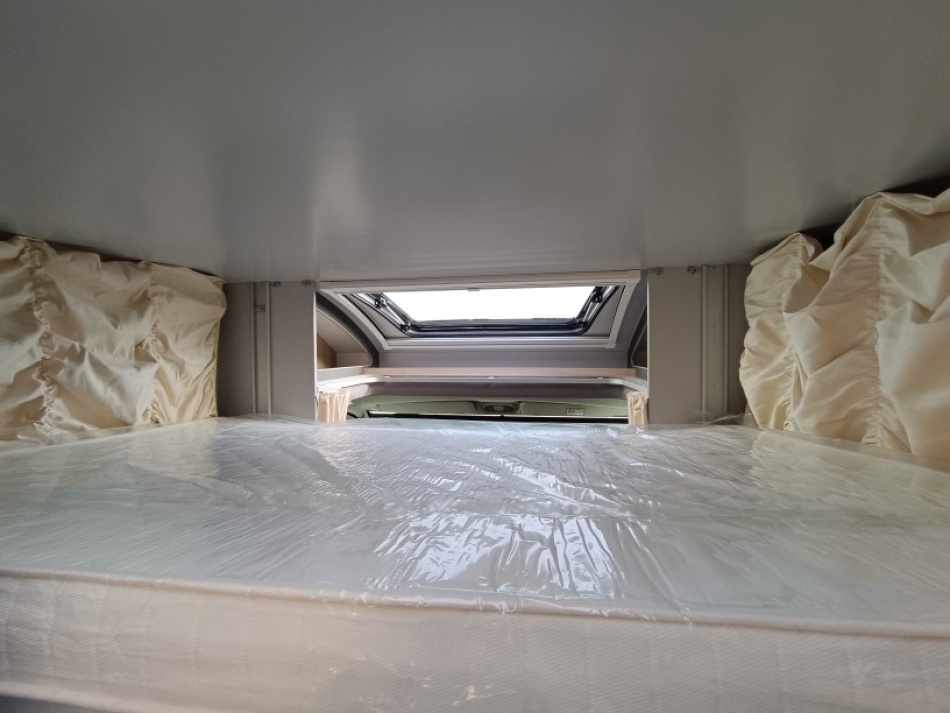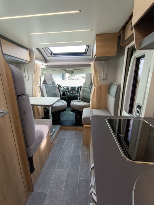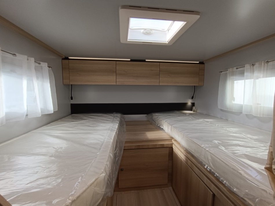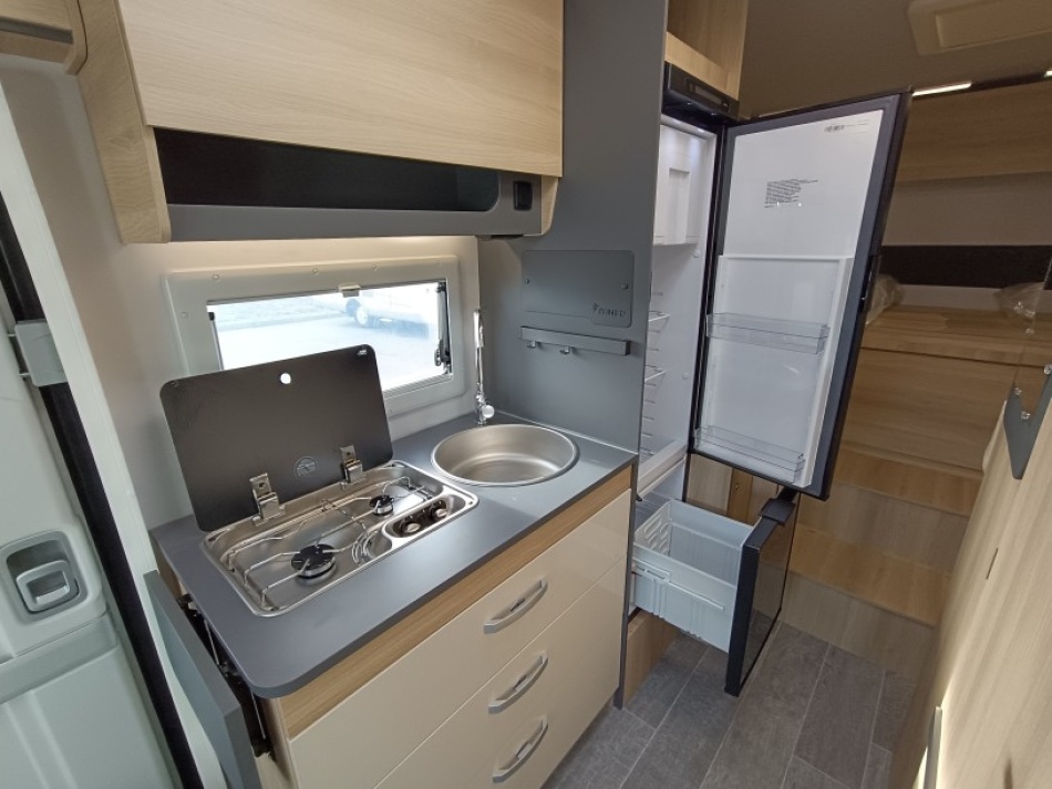 Le lit de pavillon électrique est super pratique pour accueillir des invités sans modifier la dînette. Et côté autonomie, le frigo AES 136 L, les nombreux rangements et la soute généreuse en font un modèle très fonctionnel, que ce soit pour des escapades de week-end ou des road-trips plus longs.