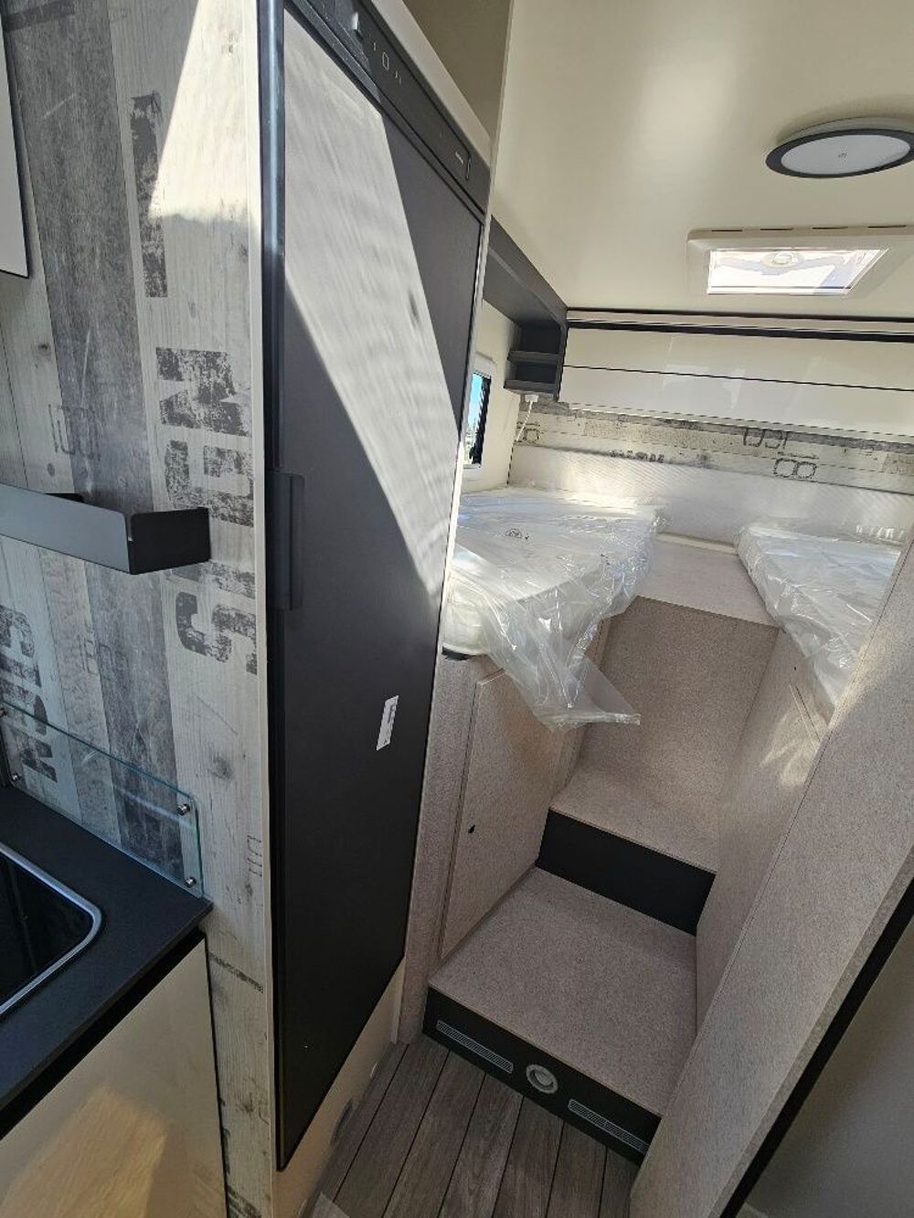 Hauteur de la pièce sous le lit pliant 1,90 m, garantit une excellente habitabilité dans l'espace de vie, malgré la faible hauteur de la cellule.