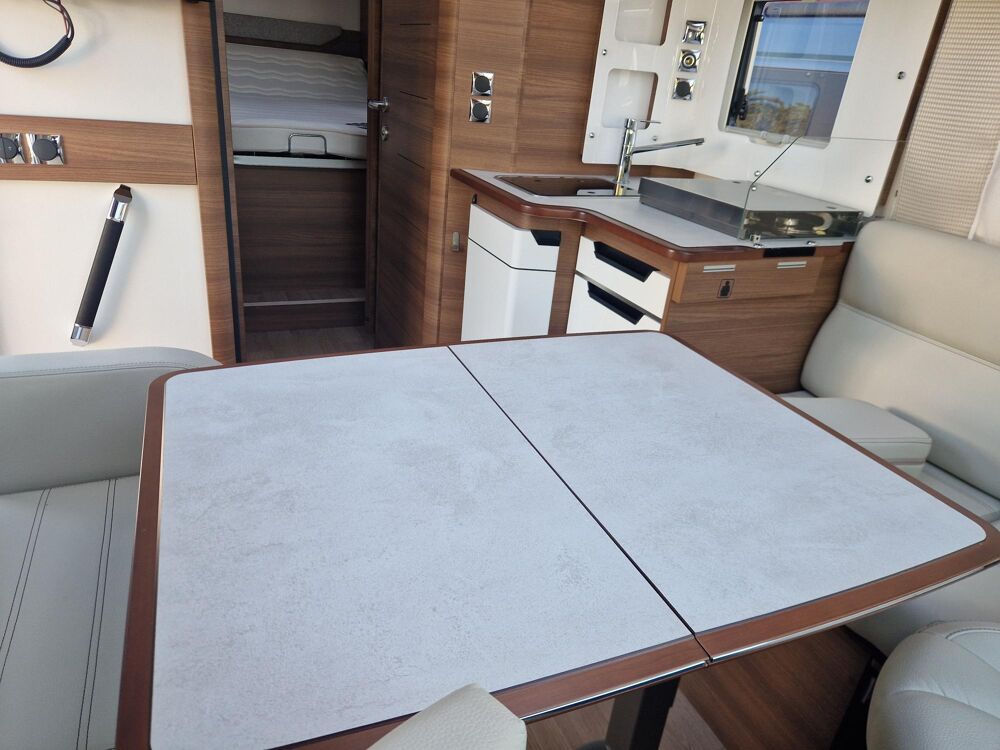 Profilé compact avec lit central modulable en hauteur, état neuf, très bien équipé, faiblement kilométré, entretiens à jour, sur une base Peugeot 2.2 l / 140 CV. A découvrir chez votre concessionnaire LIBERTIUM Muret.PANNEAU SOLAIRE 155W, CONVERTISSEUR, JANTES ALU 16, SIMILI CUIR, CAMERA DE RECUL, ANTENNE ALDEN AUTOMATIQUE, 2 BATTERIES CELLULE AGM, TV DVD, STORE REMIS CABINE