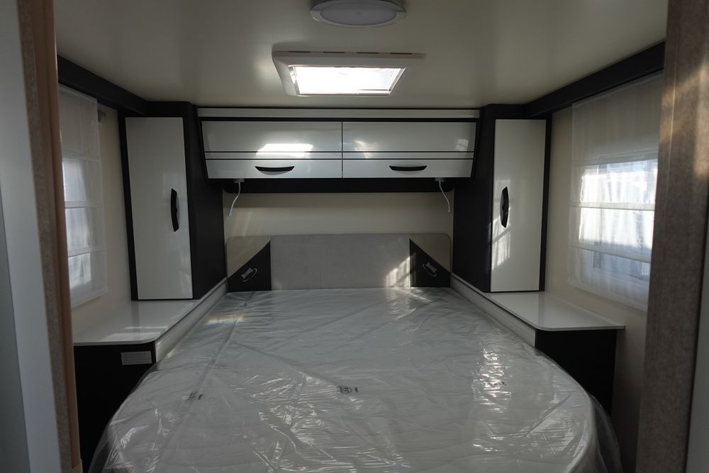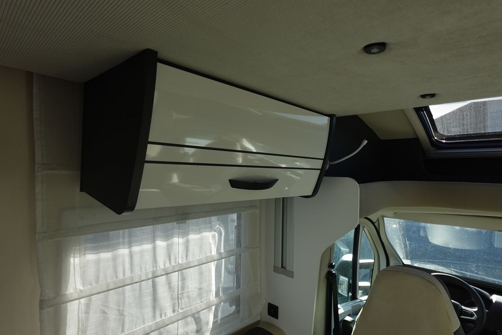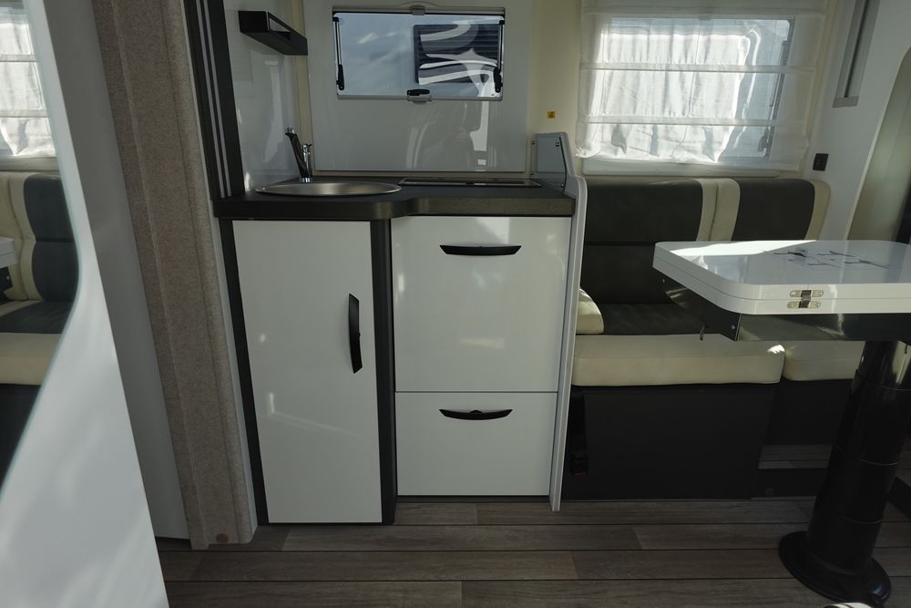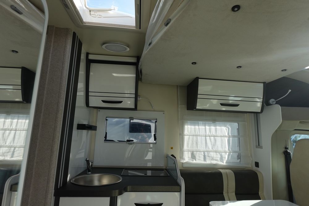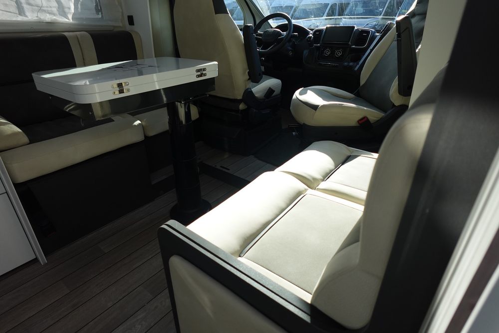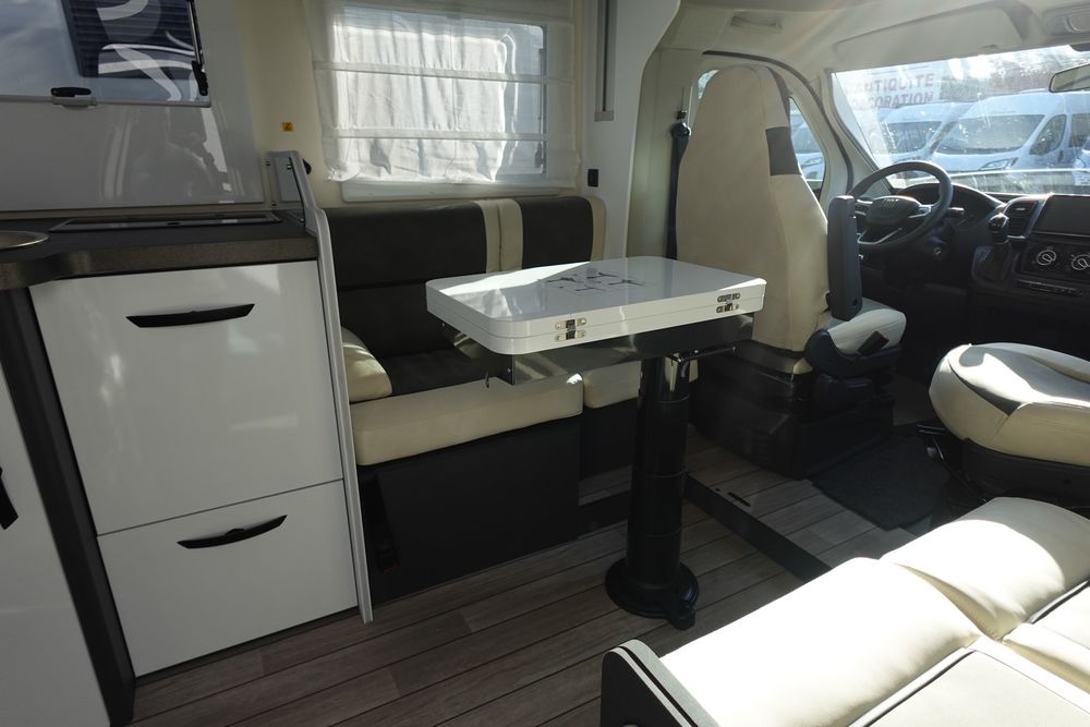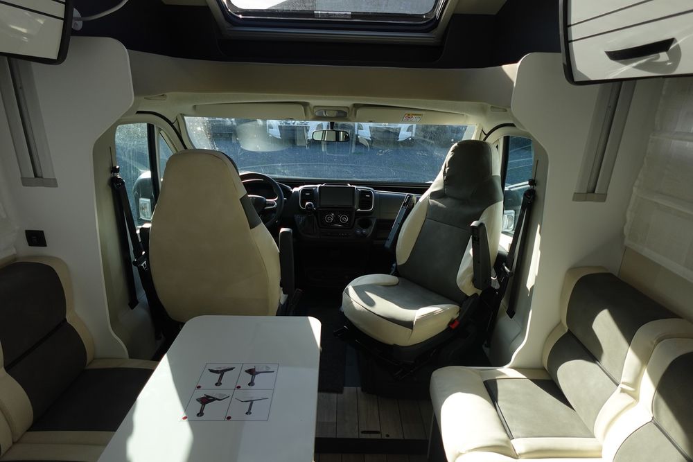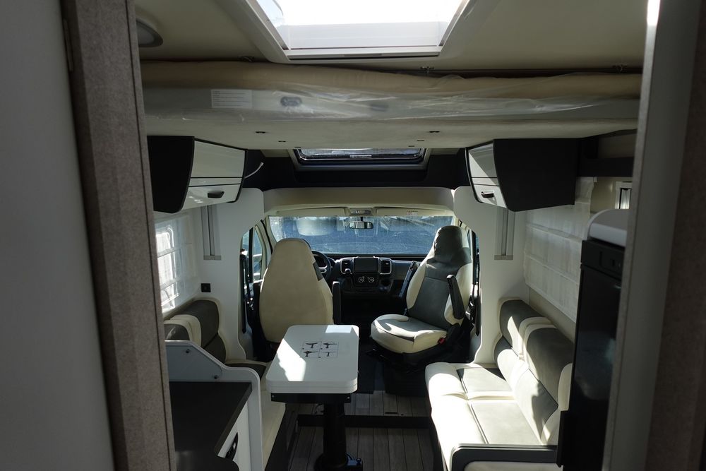 Magnifique profilé comprenant un grand salon avant panoramique avec banquette face / face, une douche indépendante de l'espace WC/lavabo, un lit central et une cuisine en L avec de nombreux rangements.