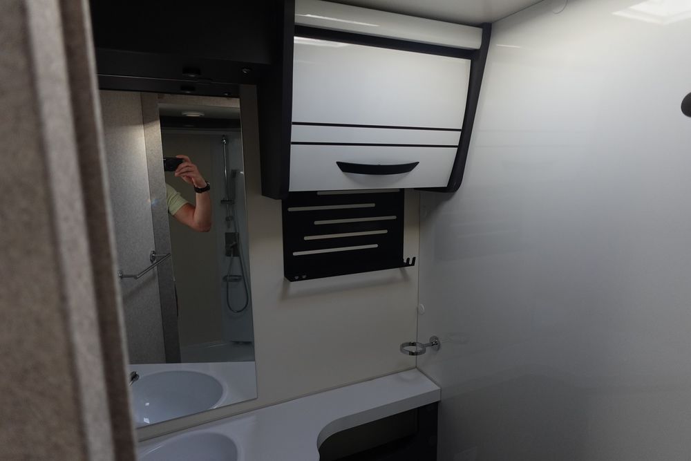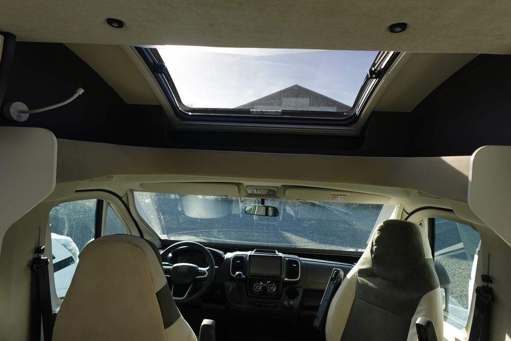 (Feux antibrouillard, Pare-chocs avant couleur carrosserie, Skid Plat Noir, Jantes en alliage 16 pouces, Volant et pommeau de levier de vitesse en cuir, Tableau de bord Techno, Contrôle de pression des pneus, Frein à main électrique, Porte cellule XL à 2 points de fermeture / fenêtre et centralisée, Panneau solaire 200 W avec régulateur MPPT, Skyroof, Store d'occultation plissé en cabine, Support TV, Housses de sièges cabine)