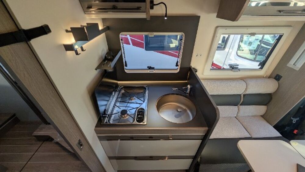 Ford 2.0 l 165 CV - SELEKT BVA, diesel, Caméra de recul, Chauffage truma combi 6 gaz ( 6000W), Climatisation automatique, Ecran tactile 12" (Apple car play+ Android), Espace pour TV 32", Feux AV/AR full led, Frein à main électrique, Isofix, Lit de pavillon electrique, Pré disposition pour 2 batteries lithium, Régulateur de vitesse avec "Intelligence speed assist", Réservoir Diesel 70 L, Réservoir d'eau grise isolé et chauffé, Skyroof, Tableau de bord semi-numérique de 8", Tissu Boréa [tissu + similicuir], Truma INET X (panneau de contrôle + APP)