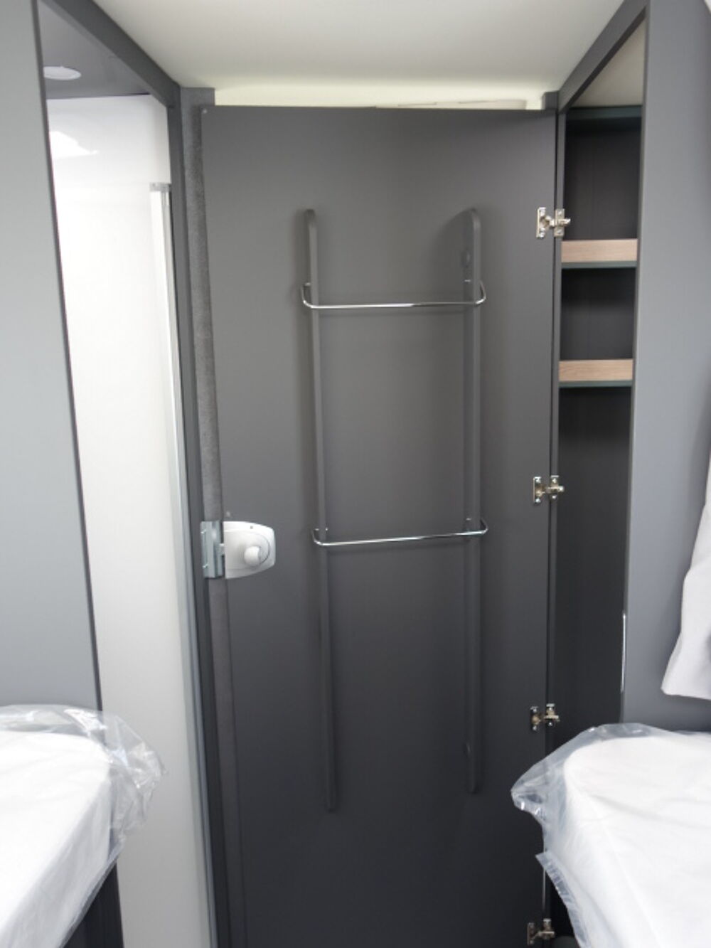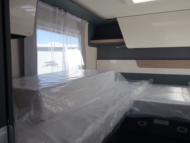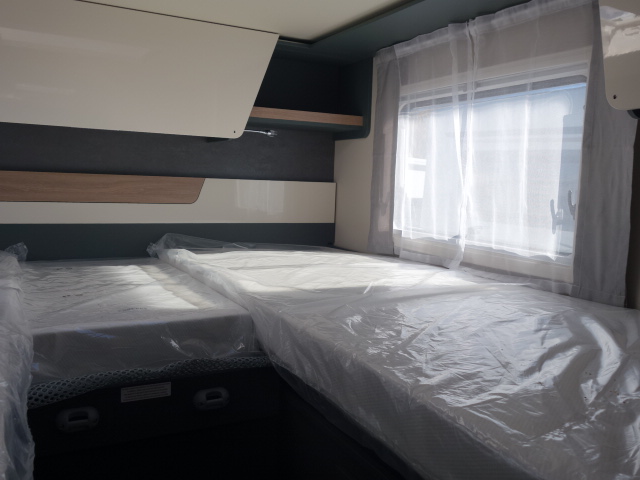 Profilé lits jumeaux transformables en grand lit sur garage, lit de pavillon, cabinet de toilette avec wc et douche séparée. trés bon équipement de base.