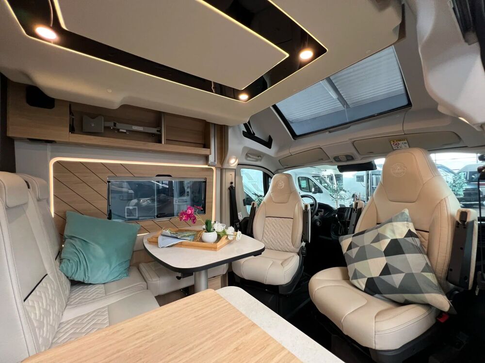 Sur la route, son châssis moderne et son gabarit maîtrisé garantissent une conduite agréable, stable et accessible à tous. Pensé pour les voyageurs exigeants, il profite de la nouvelle génération d'équipements Campérêve : meilleure isolation, autonomie renforcée et technologies adaptées aux longs voyages.