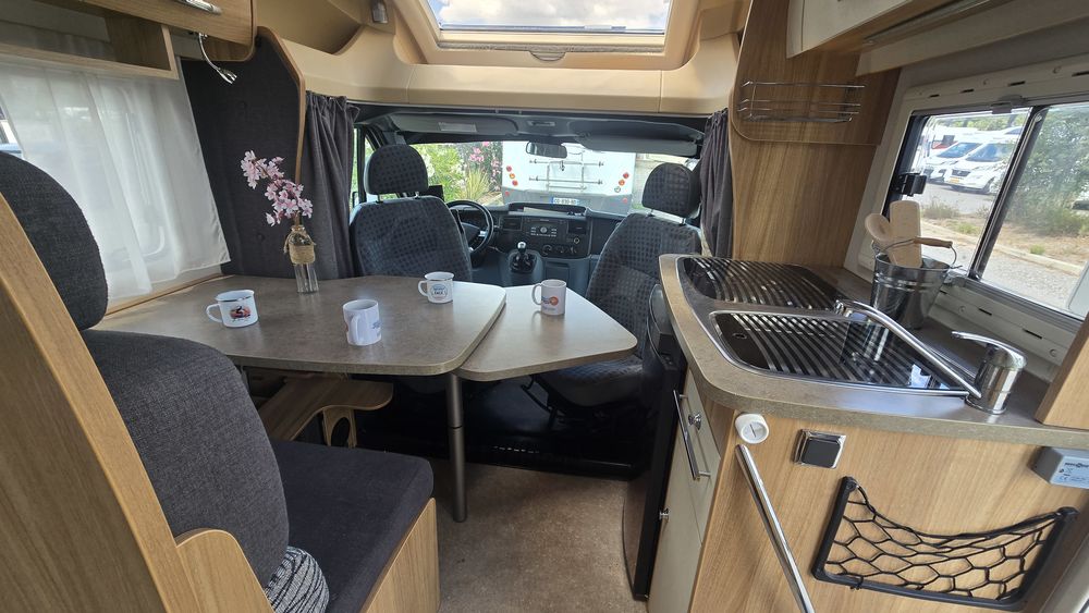 L'équipe de IDYLCAR SUD LANDES/CAMPING CAR RENT est heureuse de vous proposer le profilé CHALLENGER de 5.76 mètres sur un porteur ford 2.2 de 140 ch.