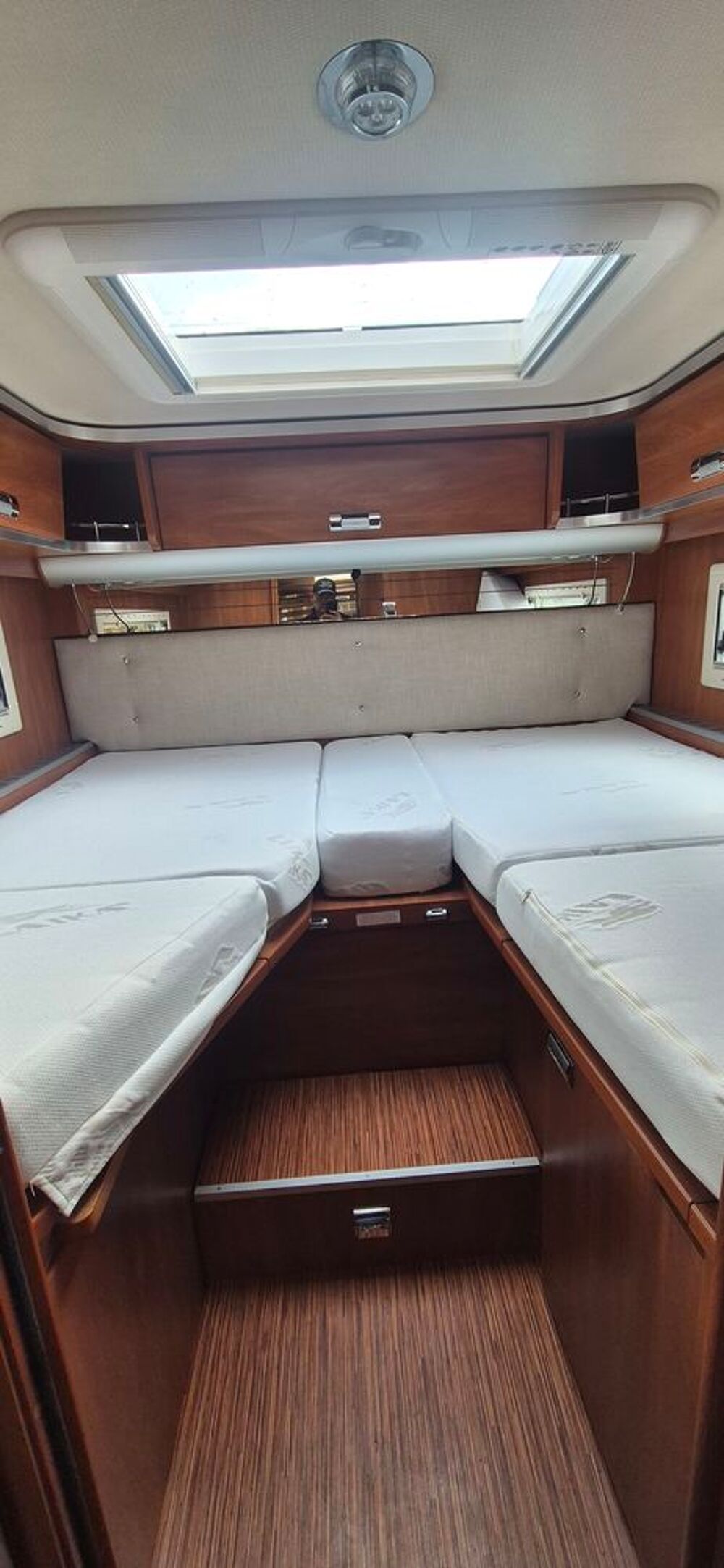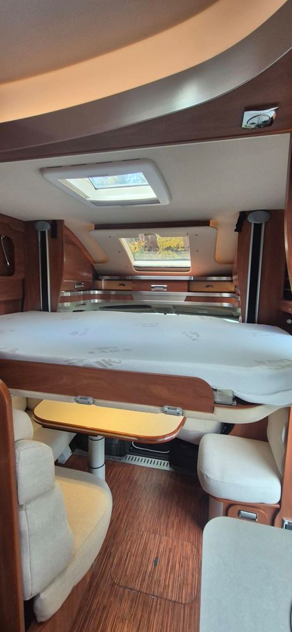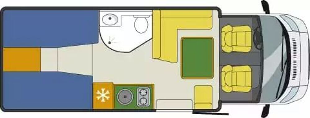 Couchage : Lit dinette (180 x 100 cm et x cm), , Lit jumeaux arrière (200 x 80 cm et 192 x 80 cm) lit pavillons(130x190 cm)