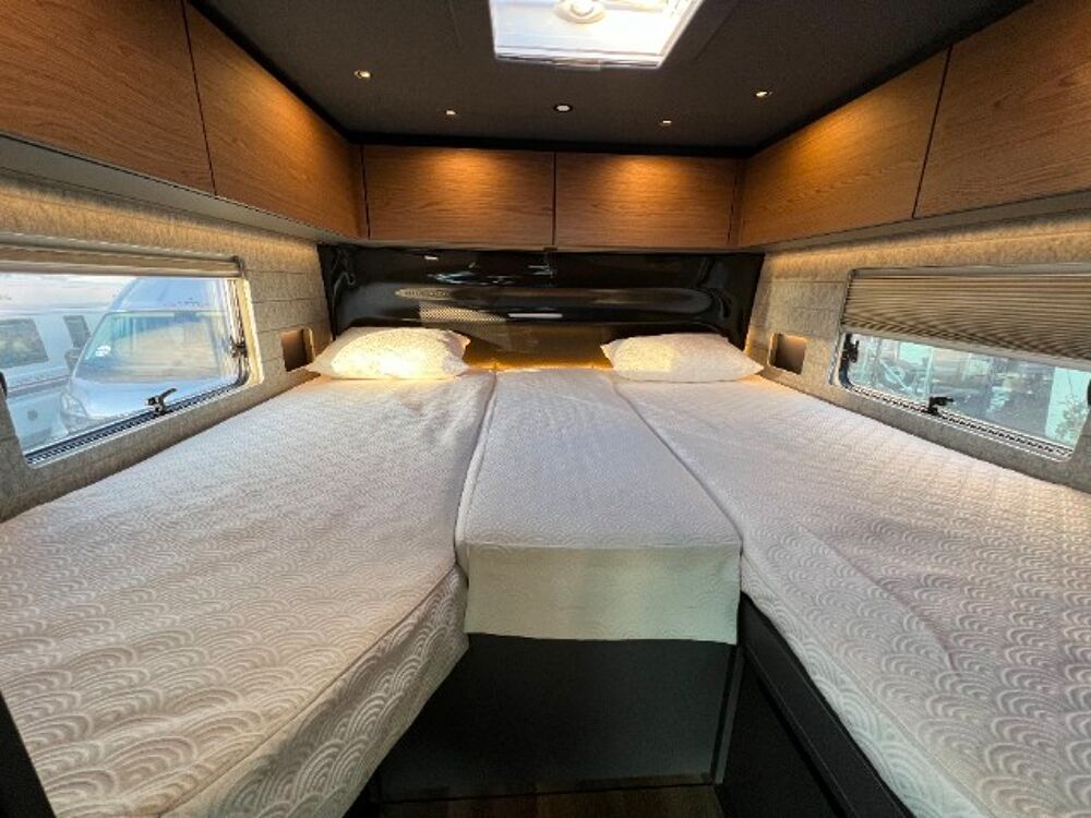 Niesmann + Bischoff I SMOVE 6.9 E 2024Fiat 2.2 l 180CV - BVA, diesel, 12/09/2024, Pack Confort, Placards pavillon Walnut Planked (noyer), Porte de soute côté conducteur, Tiroirs cuisine White Planked (mat), Verrouillage centralisé portes extér., Aération toilette SOG par le toit, Banquette avec 2 places suppl, Boîte de vitesses automatisée ZF AT9, Caméra de service (eaux usées), Chauffage à air pulse Combi 6 E, Clou Line Design (obligatoire), Coussins d'assise Temptation (cuir), Coussins de dossier cuir beige, Kiss, Decor lateral Maxi "Carbone optique", Décor personnalisé "Carbone optique", Détendeur Truma DuoControl CS, ECP - Pack Espace Cuisine Premium, Extincteur, Feux anti-brouillard à LED, Habillage paroi chambre, design carbone, Lit de pavillon manuel, Matelas suppl. entre lits jumeaux, Navigation avec écran tactile 9", PCC - Pack Confort Conduite, PM1 - Pack Multimédia 1 sans satellite, Prise 230V dans la soute garage, Précablage pour panneaux solaires, Préparation de l'auvent, Rangement coulissant côté passager, Ventilateur au-dessus de la cuisine, Vidange électr. du réservoir eaux usées