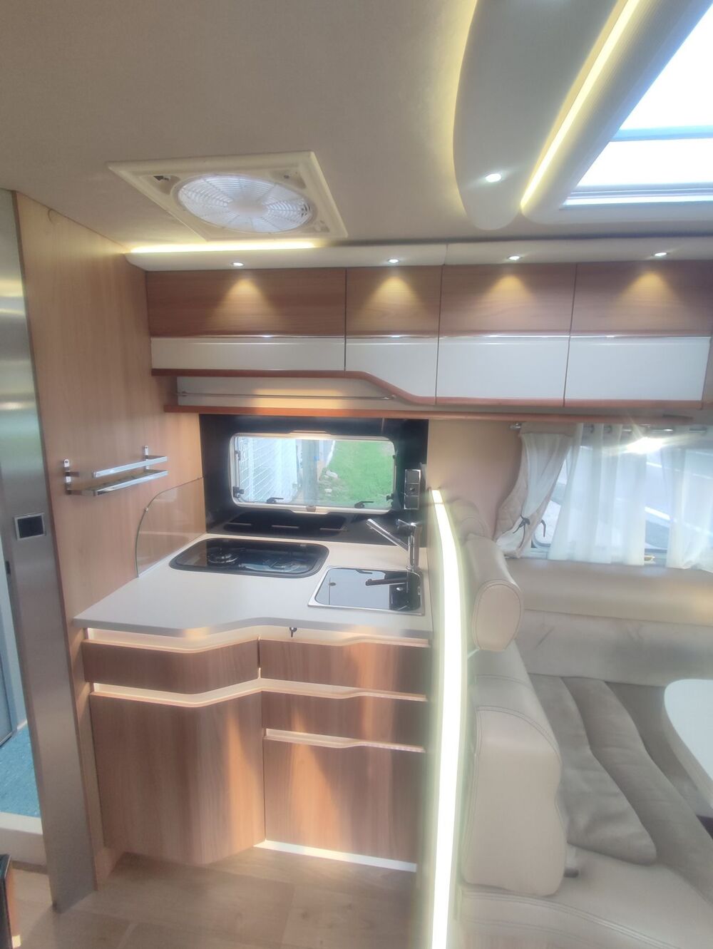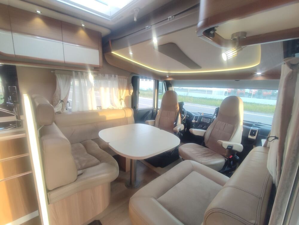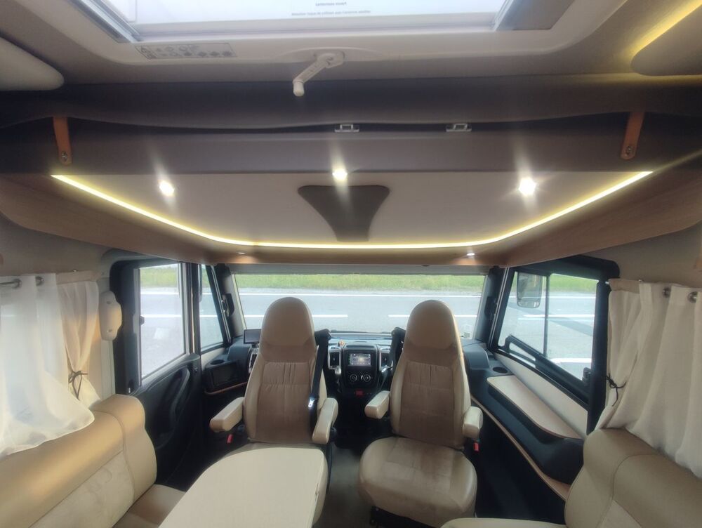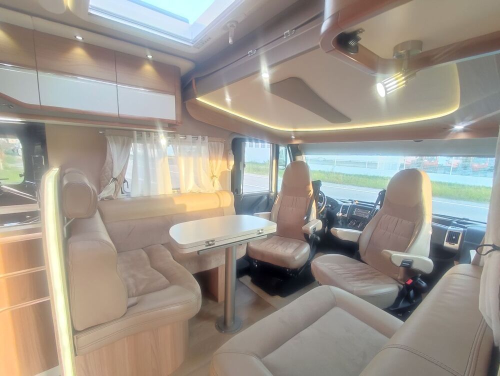 Equipements : Boite automatique, Station numérique, GPS Camper,Caméra de recul, Panneau solaire, Tv, Antenne satélite automatique, Turbo vent, Store exterieur éléctrique, Suspension pneumatique, Gaz GPL, Batterie cellule GEL 200 AH, Four gaz, Mise a niveau automatique.