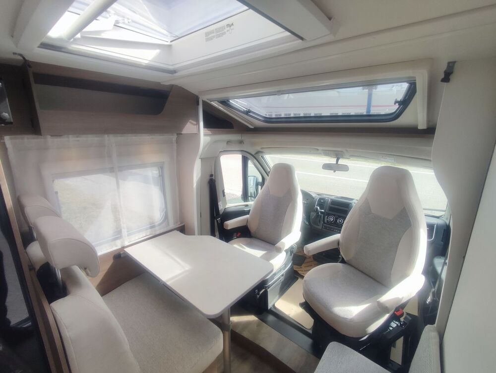 Option incluses : Boite automatique 8 rapports, Précablage caméra de recul, Pack pro+, Ambiance sellerie ICE, Frein a main éléctronique, Réservoir gazoil 90L Climatisation cabine, , Rallonge pivotante de table, Large marche pied éléctrique, Equipement de douche Lanterneau panoramique + Porte moustiquaire*, soute double accés, couleur exterieur blanc glacier + Peinture cabine gris métalisé.