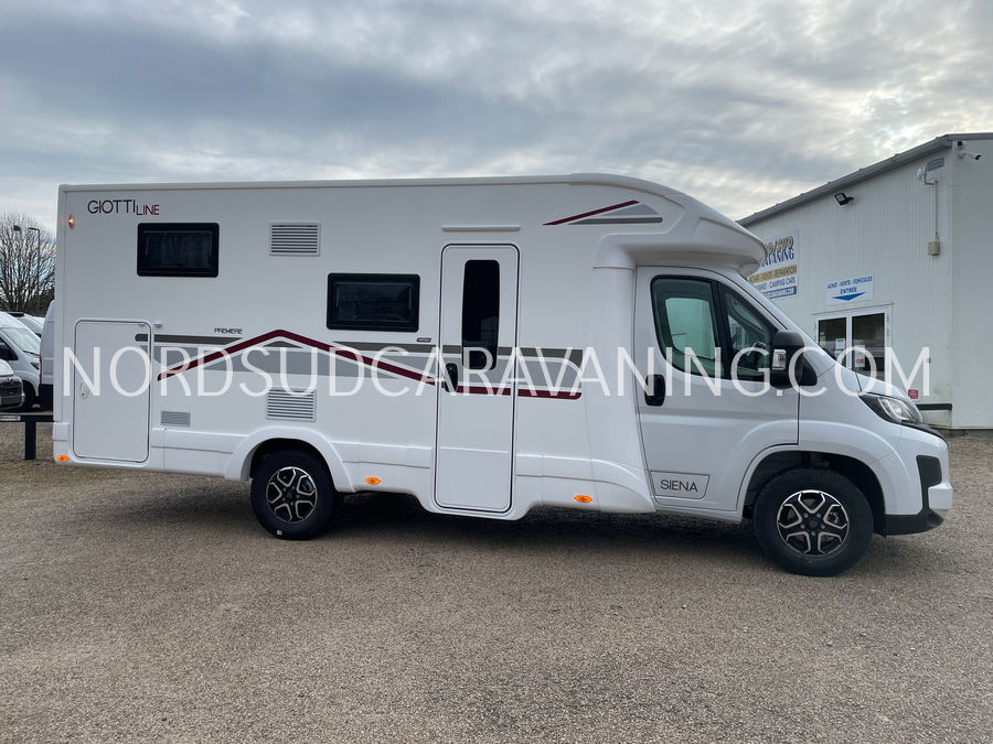 Nouveauté 2026 Camping-car profilé GIOTTILINE SIENA 385 Première Edition, 6.99m, Lits jumeaux, Lit pavillon, Douche spacieuse, Grand frigo, Caméra de recul, Soute garage…