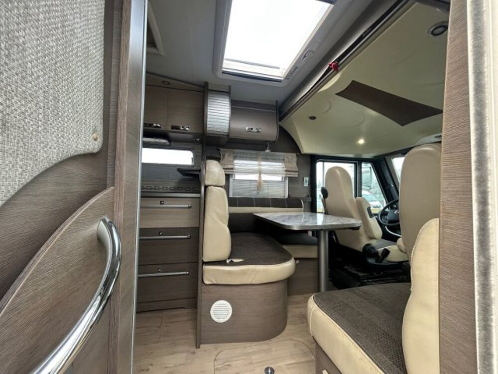 Vous offrant à l'arrière un lit central latéral sur soute, une cuisine équipée avec grand frigo et four gaz, ainsi qu'à l'avant un grand salon et un lit de pavillon sur le poste de conduire.