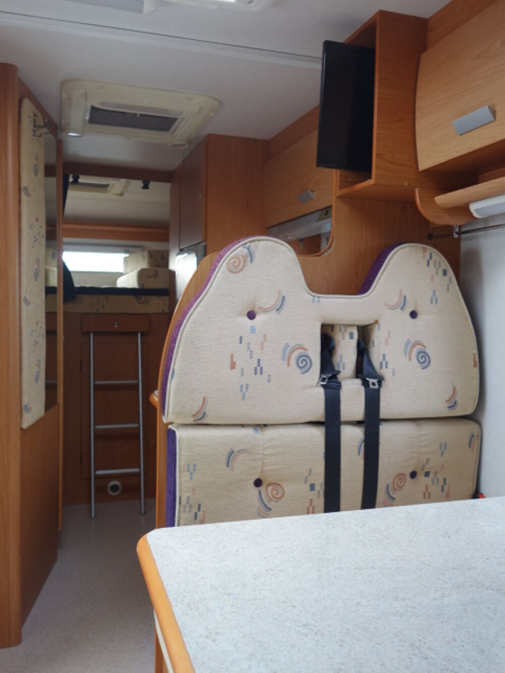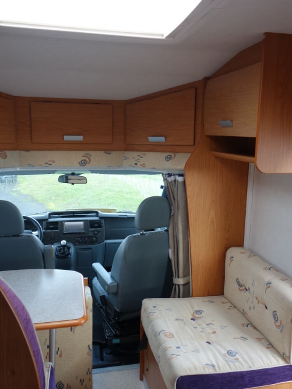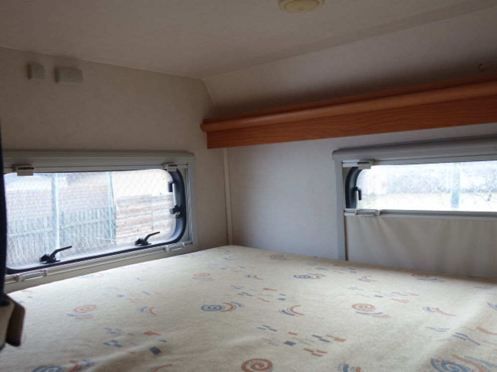 Profilé sur porteur FORD roues jumelées, grand lit arrière transversal, dinette transformable en couchage, cabinet de toilette avec WC et douche, équiupements: store, panneau solaire, antenne satellite manuelle, TV, caméra de recul, auto radio, porte vélos, four.