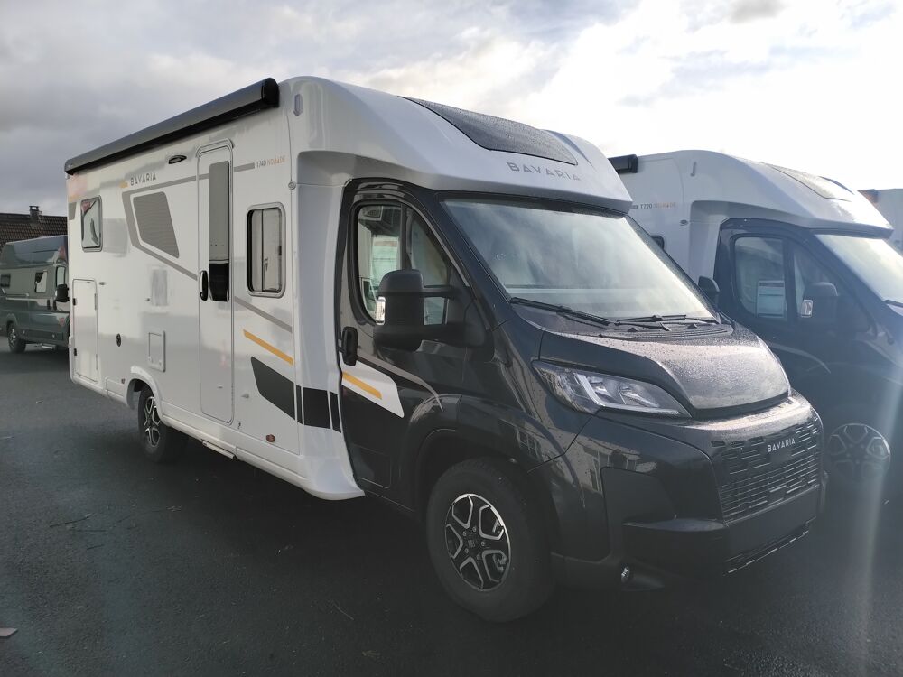 BAVARIA T740FGJ NOMADE FIAT DUCATO 140 CV 2200 CCCombi 6 Truma, Coffre à gaz pour 2 bouteilles, Booster pour un charge rapide de la batterie, Support TV réglable et alimentation, Commandes au volant, Climatisation manuelle de la cabine, Rétroviseurs électriques et dégivrants, Réfrigérateur à compression, Prise 230V + USB double chambre, Marche pied escamotable électrique, Panneau de commande digital Xpérience, Précablâge multimédia, Airbags conducteur et passager, Précâblage du panneau solaire et de l'antenne satellite, Table centrale papillon, Pneumatiques 4 saisons, Réservoir diesel 90L, Régulateur / limiteur de vitesses, Kit anti crevaison, ABS,ESP,ASR, Lithium 200A + 2 panneaux solaire, Autoradio 7 + Caméra de recul, Feux antibrouillard, Douche extérieure