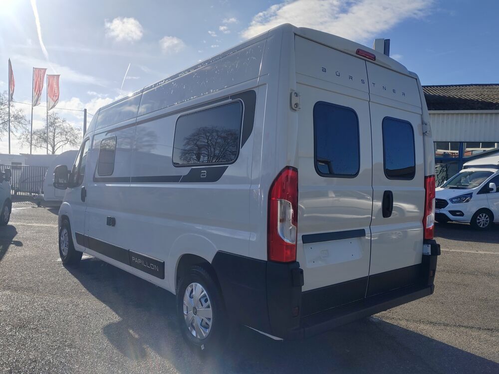 LIBERTIUM MURATET 31 vous présente la nouveauté 2026 du constructeur Allemand BÜRSTNER, l'audacieux PAPILLON PC 6.0. Un fourgon totalement innovant grâce à son implantation très astucieuse, retrouvez à bord les dernières idées et fonctionnalités du moment. Le tout disponible a un prix très compétitif ! Venez découvrir ce modèle qui vaut le détours sur notre concession !Valeur du pack 6730€ remisé à 4000€, Valeur du pack 1320€ remisé à 890€, Valeur du pack 1040€ remisé à 790€, Glacière à compression avec tiroir adapté, Plache à découper, Rail multifonctions, Traction +, Emplacement pour réchaud gaz, Eclairage LED indirect, PACK CUISINE COMPRENANT :, Volant et pommeau cuir, Habillage techno tableau de bord, Sièges conducteur et passager réglables et pivotants, Baies portes arrières, Habillage sellerie cabine identique à la cellule, Baie espace dinette, PACK DESIGN CHASSIS COMPRENANT :, Baie porte coulissante, PACK CONFORT CELLULE COMPRENANT :, Marchepied électrique, Stores plissés occultants en cabine, Lanterneau Midi Heki, Lanterneau espace salle de bain, Baie latérale arrière gauche, Pare-chocs avant peint couleur carrosserie, Feux antibrouillard avant, Calandre Burstner, Valeur du pack 2380€ remisé à 1200€, Revêtement des parois intérieures en tissu, PACK CONFORT CHASSIS COMPRENANT :, Moustiquaire de porte latérale