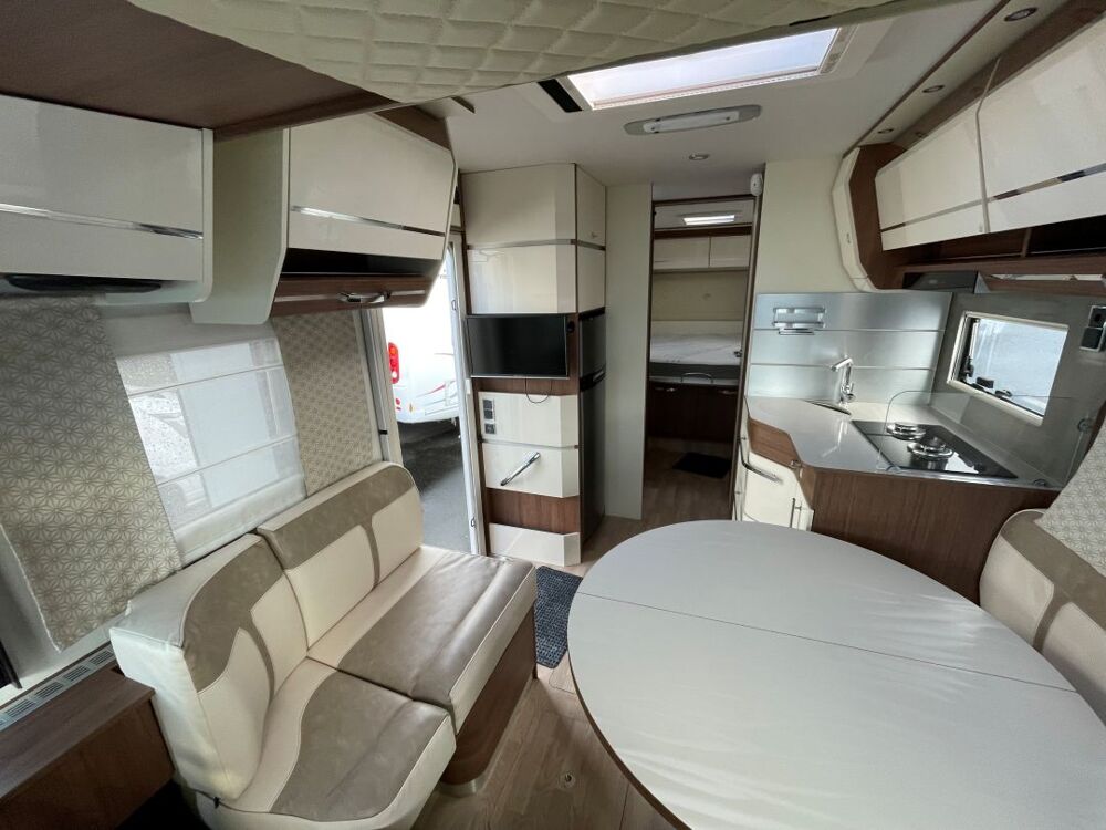 À découvrir sur notre parc : Fleurette 75 LMF Crystal – millésime 2021, un camping-car haut de gamme reconnu pour la qualité de fabrication Fleurette, ses finitions soignées et son excellent confort en toutes saisons.Son implantation très appréciée avec lit central et lit pavillon offre une vraie polyvalence, idéale pour voyager à deux ou en famille, tout en conservant un bel espace de vie. Vous profitez également d'une grande salle d'eau avec séparation, de nombreux rangements et d'un aménagement pensé pour le confort au quotidien.