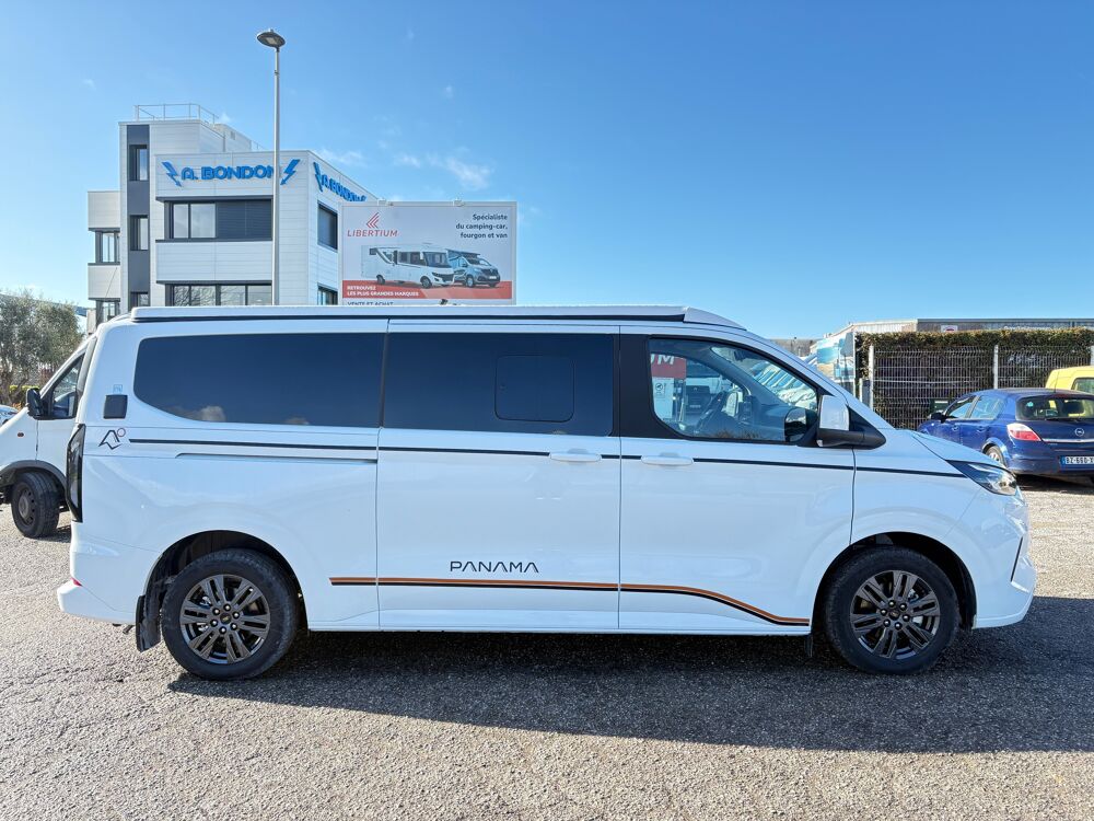 Le Panama PEAK 59+ 2026 incarne la liberté en format compact. Basé sur le Ford Tourneo Custom, ce van aménagé allie élégance, confort et praticité pour voyager sans compromis. Son aménagement ingénieux offre un espace de vie optimisé, une cuisine fonctionnelle et un couchage confortable, idéal pour les escapades en couple ou en famille. Maniable au quotidien et parfaitement équipé pour l'aventure, le Panama 59+ est le compagnon idéal pour découvrir le monde en toute simplicité.CHAUFFAGE WABASTO, CONVERTISSEUR 600W, JANTES ALU 17, FRIGO 42L, CABINE DE DOUCHE PORTABLE, SIEGES CHAUFFANTS, CAMERA DE RECUL, ISOLATION RENORCEE, FEUX LEDS, CLIMATISATION CABINE, CRUISE CONTROL, BLUETOOTH CARPLAY ANDROID AUTO, DEMARRAGE SANS CLES