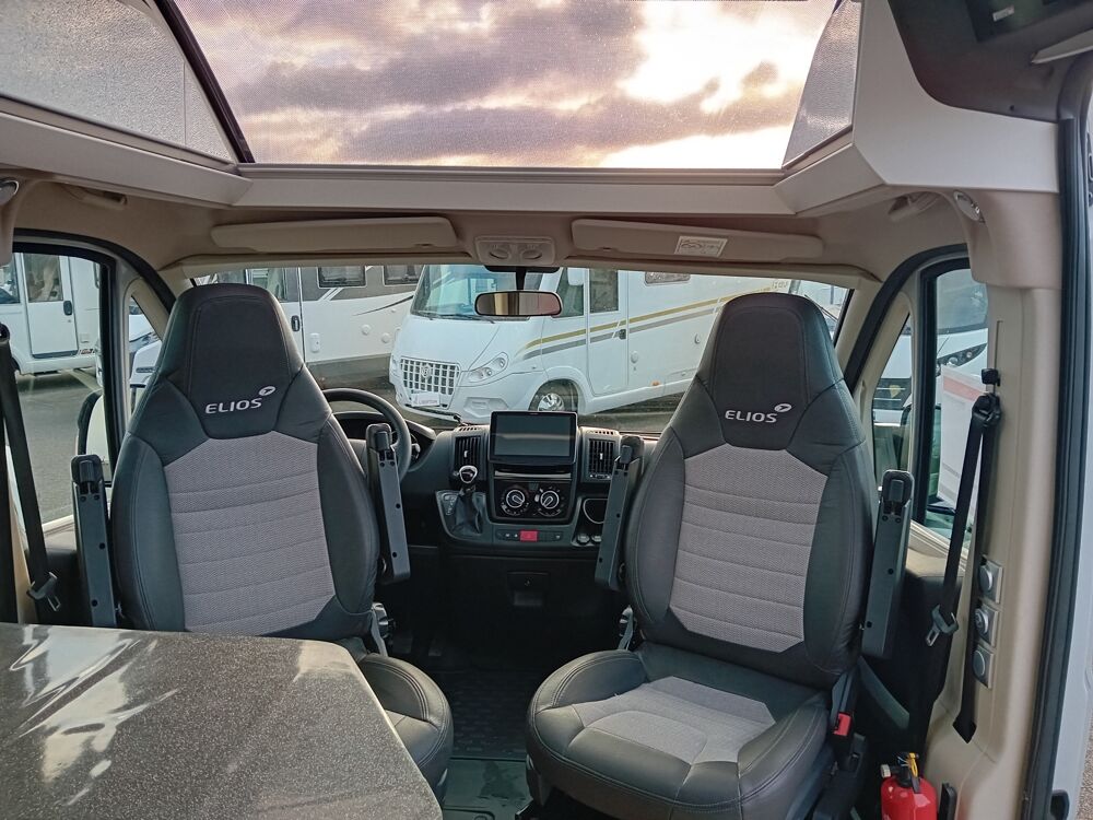 Compact par l'extérieur, étonnamment généreux à l'intérieur, l'ELIOS 59 T SKYLINE est fait pour ceux qui aiment voyager sans contraintes. Propulsé par un FIAT 140 CV (2021), il offre une conduite souple et agréable, parfaite pour passer de la ville aux grands espaces en toute simplicité.À bord, chaque détail est pensé pour optimiser l'espace et créer une atmosphère moderne et accueillante. On s'y sent immédiatement prêt à partir : une nuit face à l'océan, un réveil en montagne, une escale imprévue au bout d'un chemin.