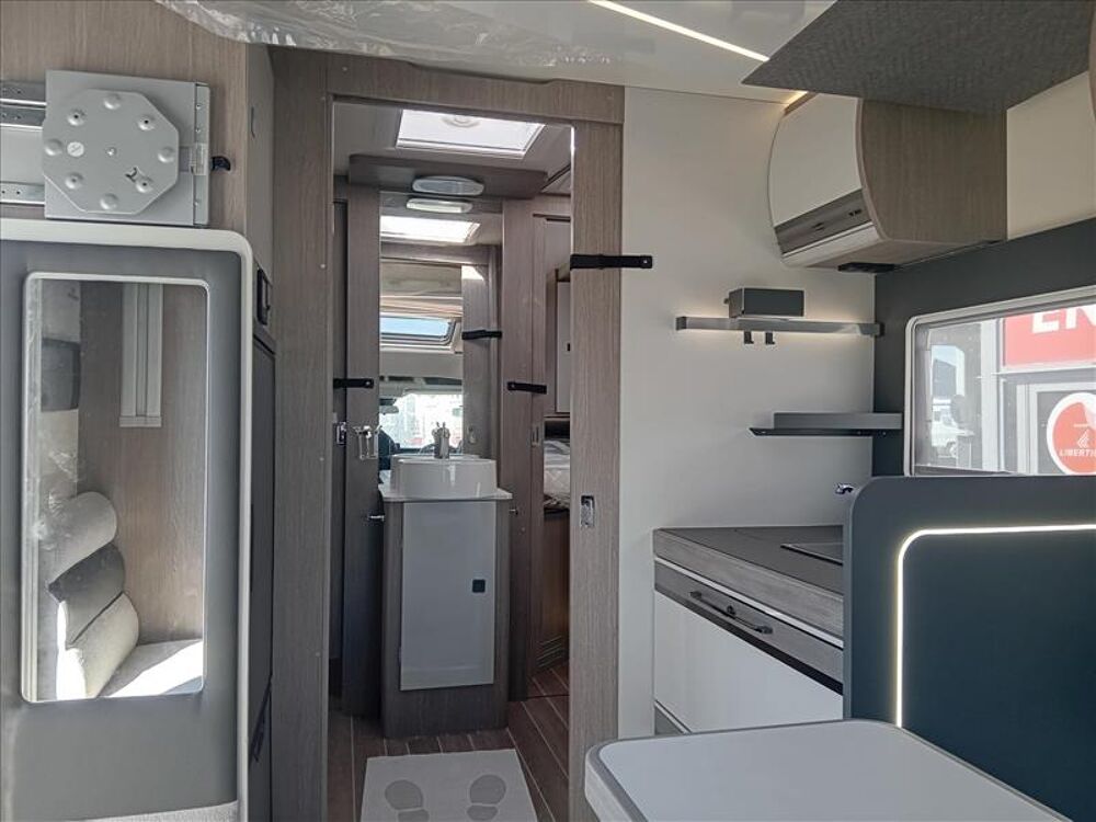 ROLLER TEAM ZEFIRO 266 TL FORD 2.0 L 165 CVPare choc et bas de caisse peints couleur carrosserie, Pack zefiro (vameur 4000e inclus) moteur 165ch, Essui glace auto, panneau solaire 200w, Feux de jours a leds, allumage auto des feux, Ecran tactile 12 apple carplay et android auto, Store exterieur 5200 thule, prise gaz EXT et douchette EXT