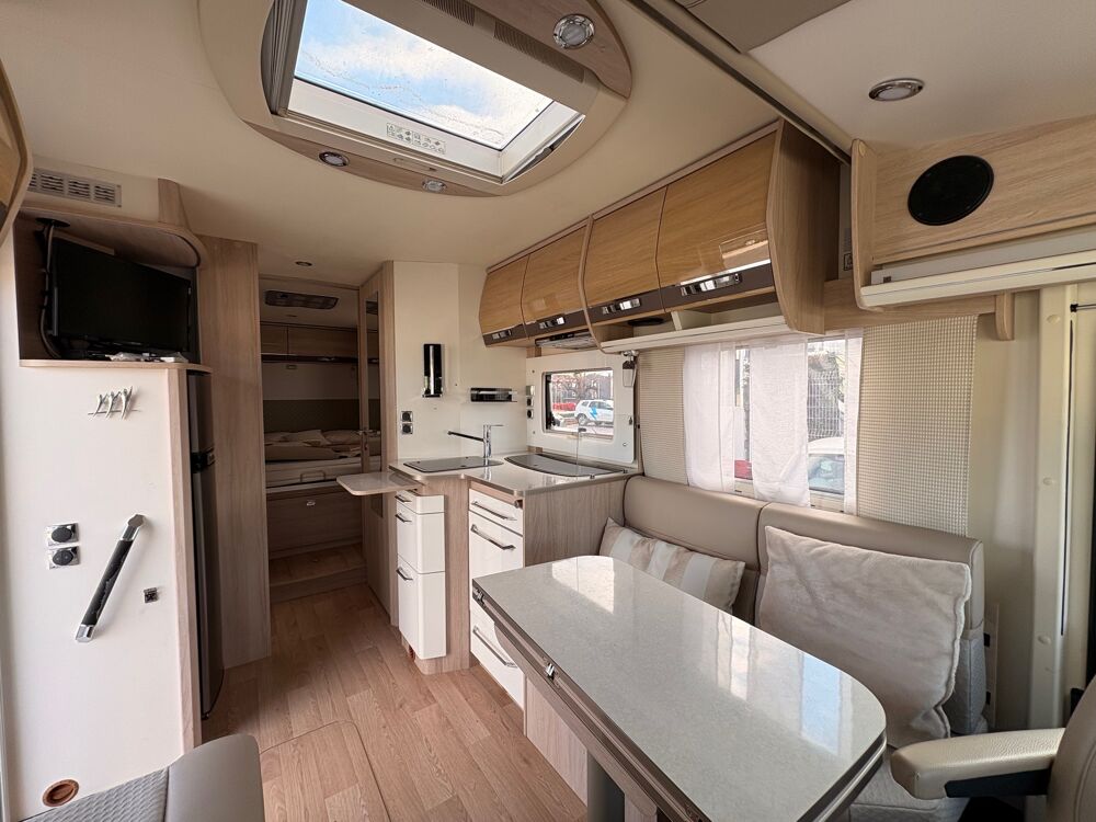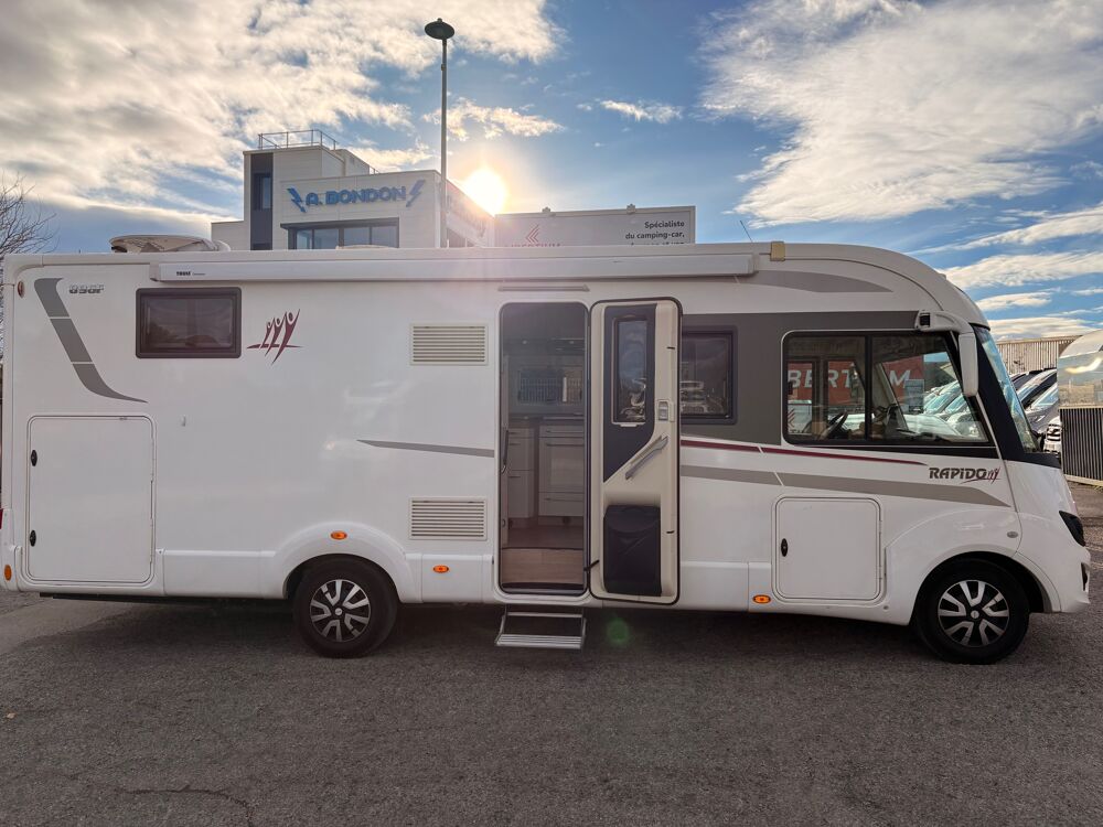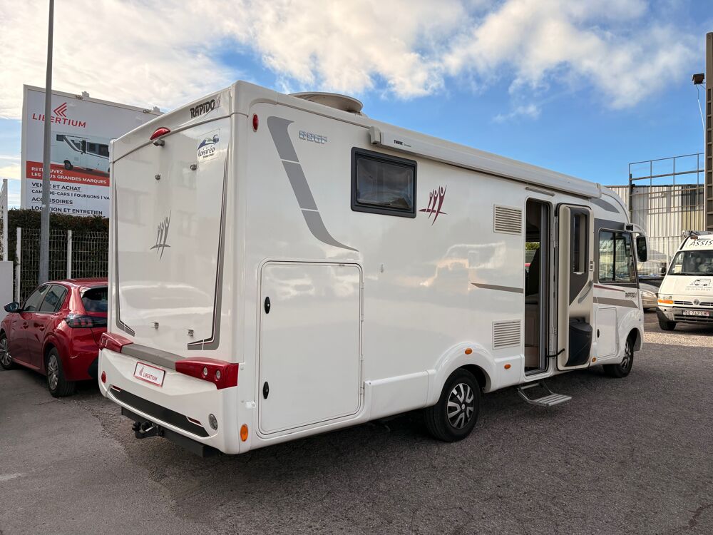 Le Rapido 896 F est un camping-car intégral de 7,5 mètres, conçu pour offrir un confort luxueux dans un espace raisonnable.Il peut accueillir jusqu'à 4 personnes et dispose d'un lit central confortable et d'un salon convivial. Visible chez libertium Montpellier.## CV, 38446 km, 2019, longueur : 7.49 cm, . 63900 euros.