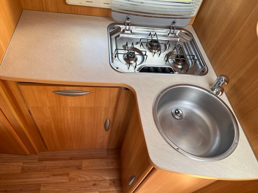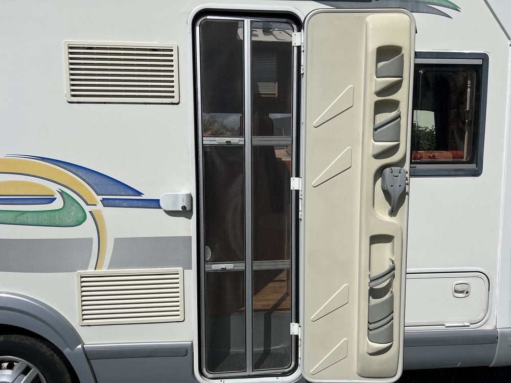 CHAUFFAGE COMBI TRUMA 4, STORE EXTERIEUR 4M, GAZINIERE 3 FEUX, FENETRE SDB, CUISINE EN L, MOUSTIQUAIRE DE PORTE CELLULE, PORTE VELO, RAFRAICHISSEUR D' AIR, REFRIGERATEUR TRI MIX, VOLET ISOTHERME INTERIEUR, LANTERNEAU PANORAMIQUE, ECLAIRAGE EXTERIEUR
