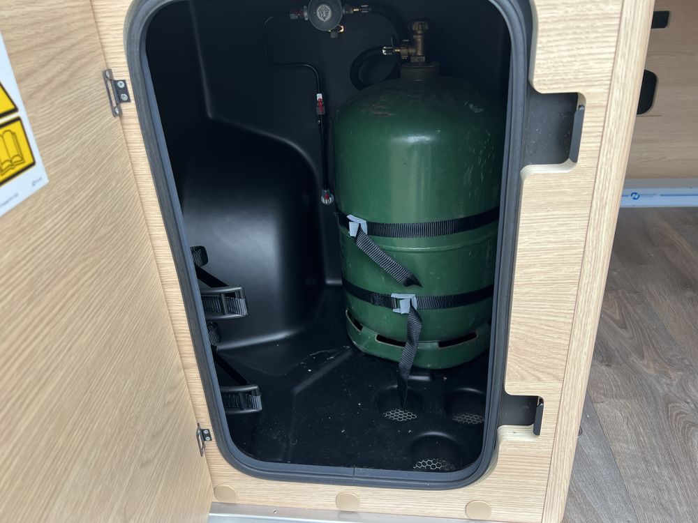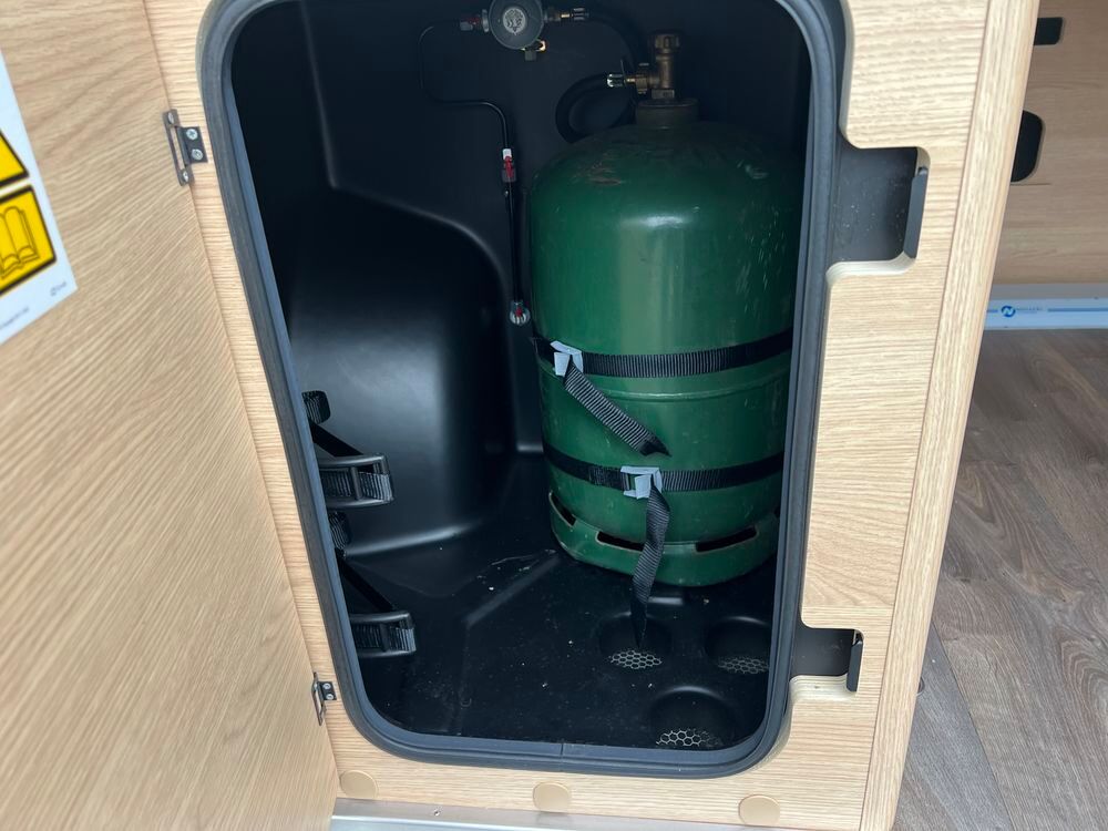 CHAUFFAGE COMBI TRUMA 4, STORE EXTERIEUR 3.5M, GAZINIERE 2 FEUX, MOUSTIQUAIRE DE PORTE CELLULE, PORTE VELO, STORES PLISSES DE CABINE, REFRIGERATEUR 12V A COMPRESSION