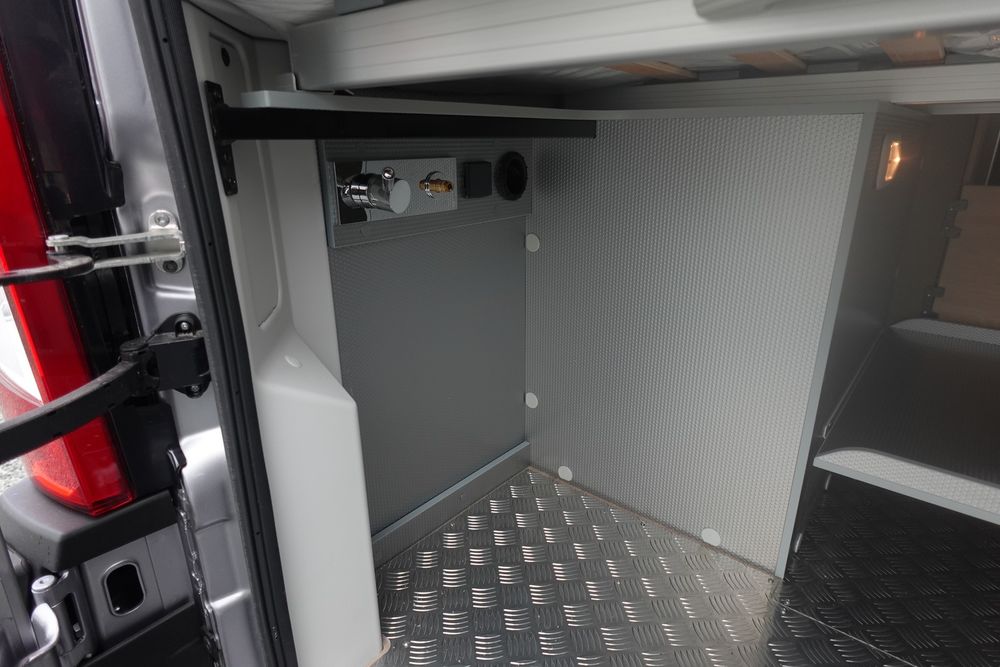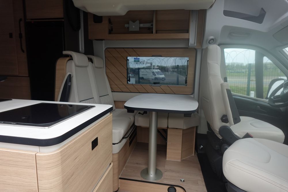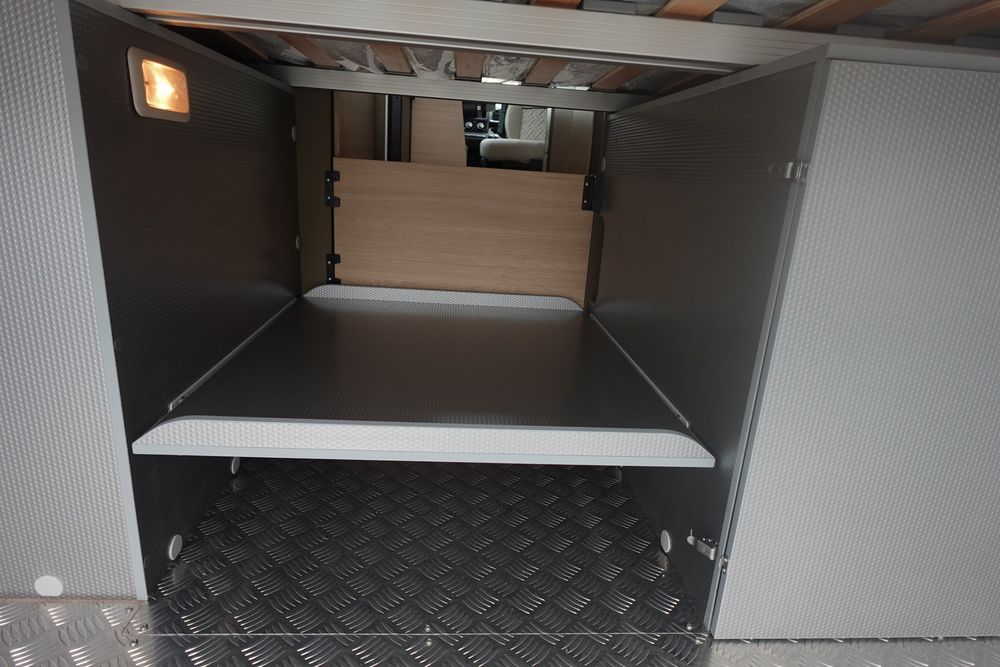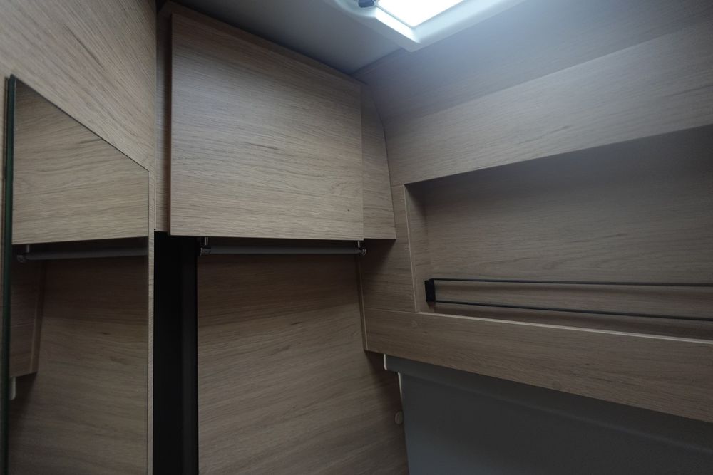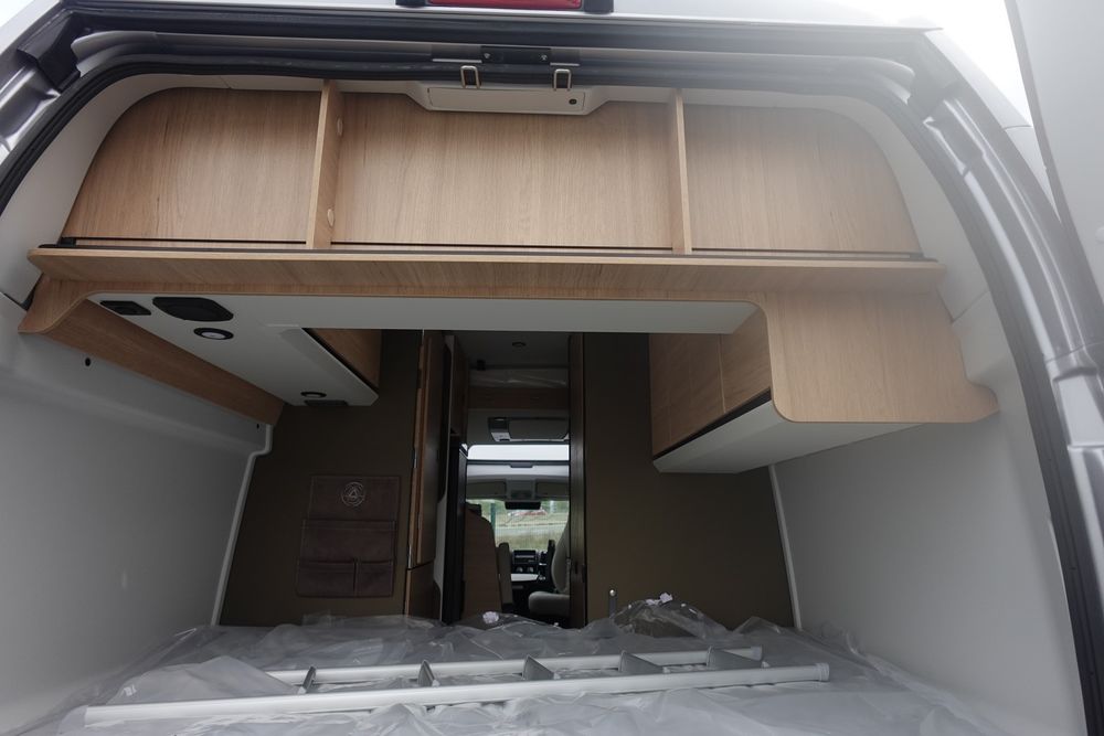 Son salon en L panoramique crée une atmosphère conviviale, tandis que la douche indépendante des WC garantit un véritable confort au quotidien. Exclusivité Campérêve : le MODUL'SPACE® avec son système de penderie breveté par le groupe RAPIDO, libère de l'espace en un clin d'œil. À l'arrière, la grande soute offre un volume modulable selon vos besoins.