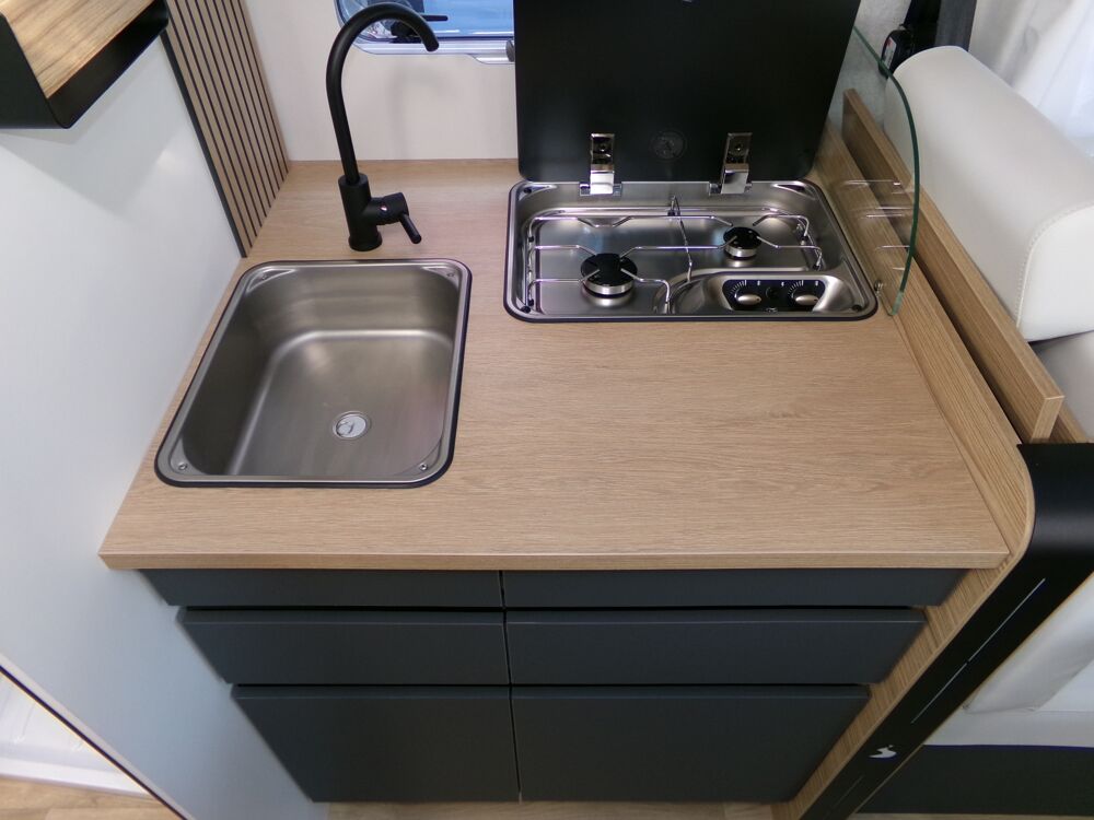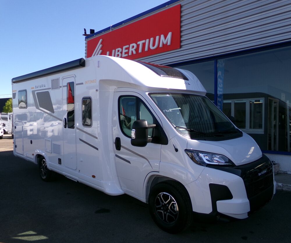 BAVARIA T720FGJ INTENSE FIAT DUCATO 140 CV 2200 CCCALANDRE NOIRE, CABINE BLANCHE, JANTES ALLIAGE 16, BATTERIE 95 AGM + PANNEAU SOLAIRE 210W, STORE BANNE, PACK MEDIA7, DOUCHETTE SOUTE ARR : eau froide et chaude, PRISE GAZ EXTERIEURE