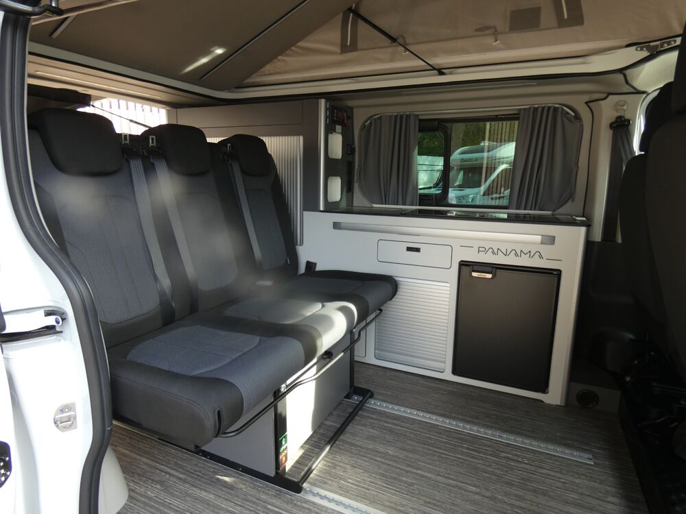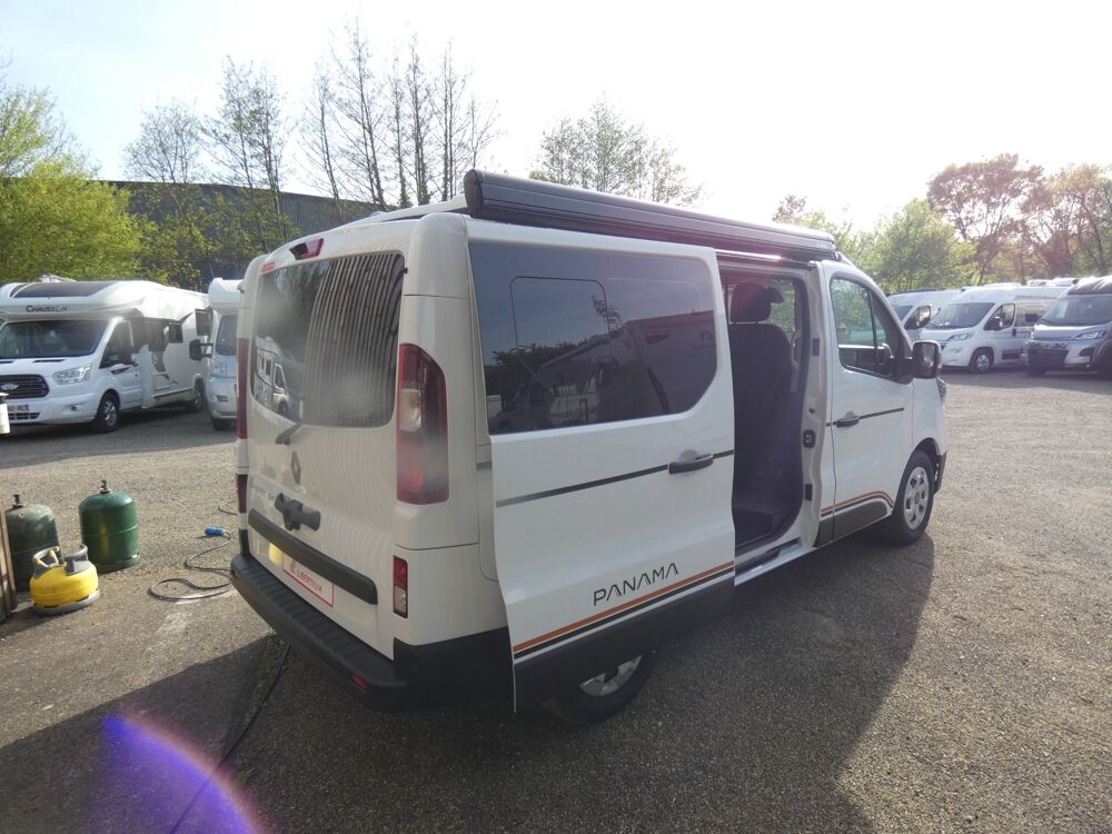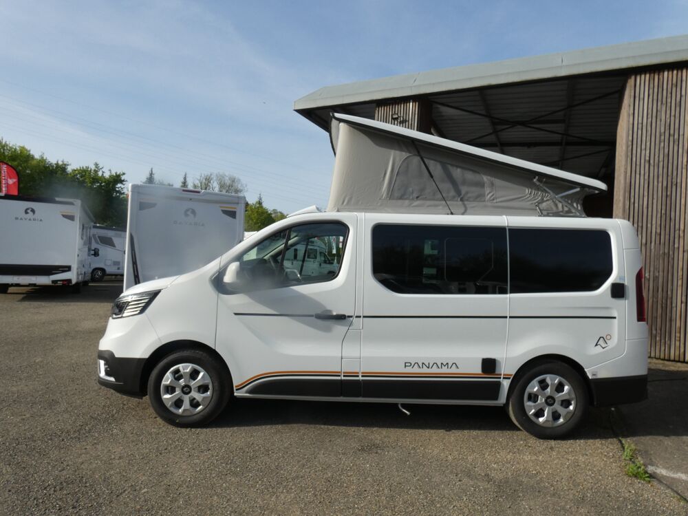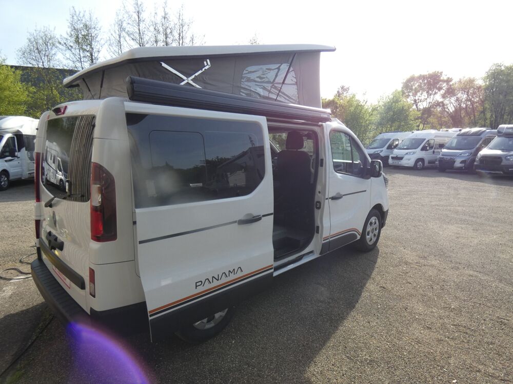 Suite au carton de son modèle P 10 + sur FORD, PANAMA nous propose une version sur RENAULT TRAFIC à un prix très compétitif !!Le PANAMA RIVER 10 vous offre 5 vraies places, frigo, chauffage, évier, plaque de cuisson, et aménagement de qualité et accessoires, pour voyager facilement.