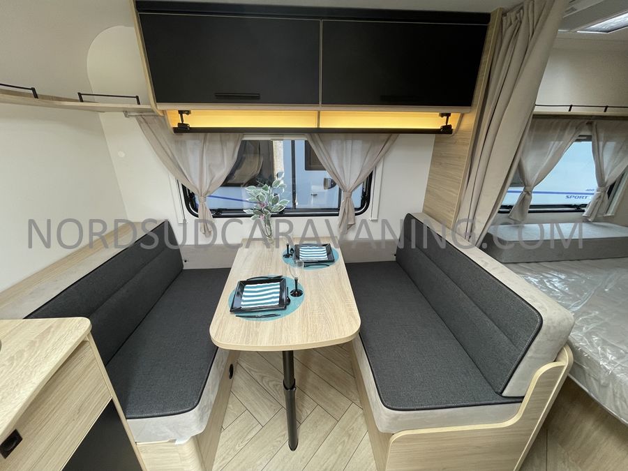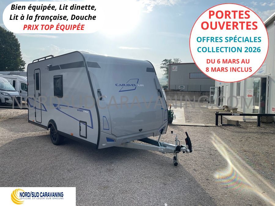 Nouveauté 2026 CARAVELAIR 410 Sport Line, Lit à la française avec de nombreux rangements en seulement 4.20m, toute équipée