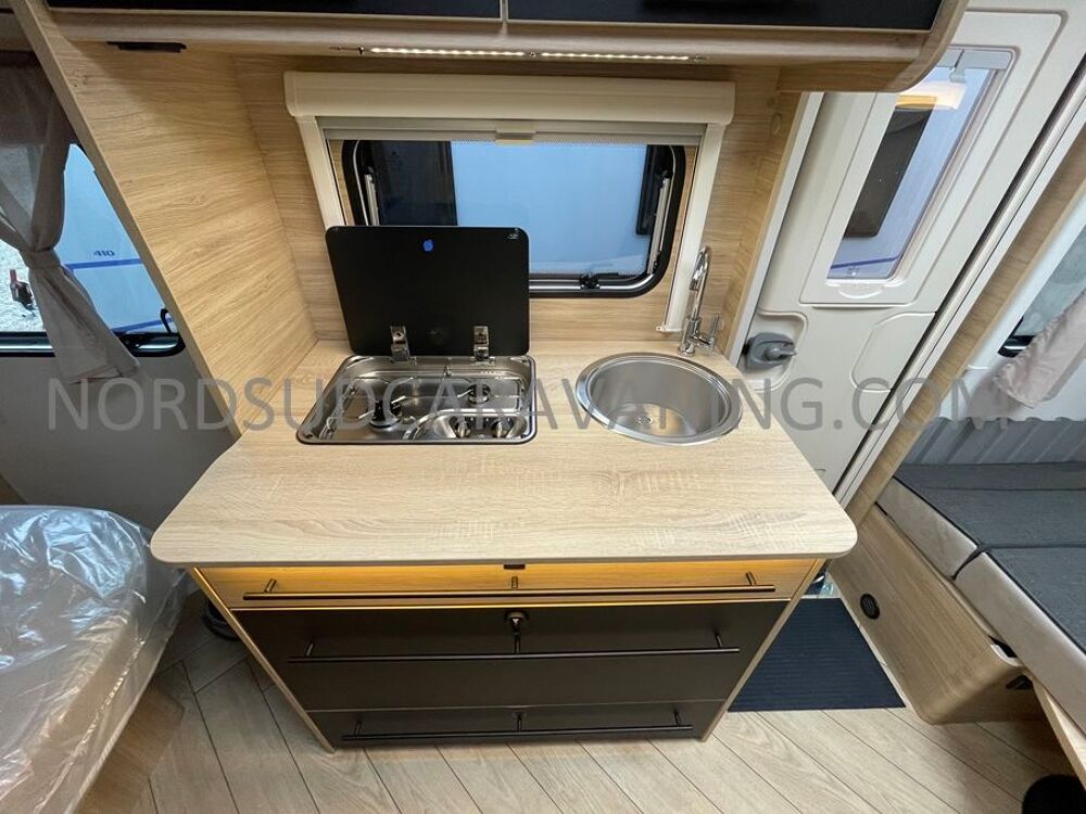 Nouveauté 2026, Caravane CARAVELAIR 480 Sport Line avec Lit central, Lit dinette, Grand Frigo...