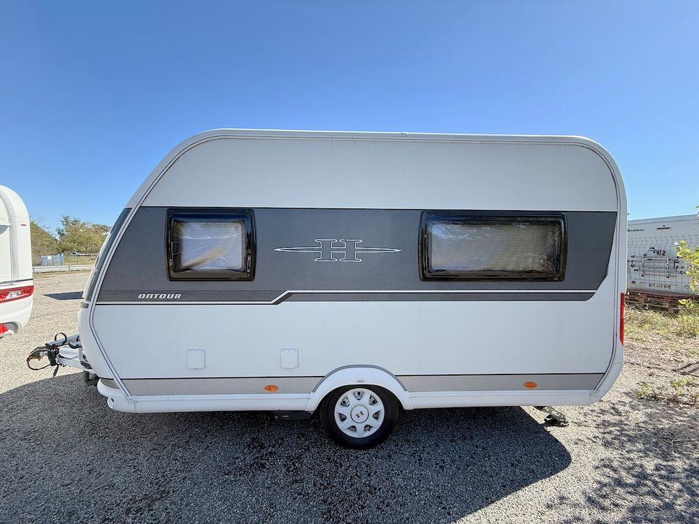 Caravane occasion, lit transversal, moins de 5 m, récente, 4 places, Hobby 390 SF Ontour, à Roques proche de Toulouse (31)