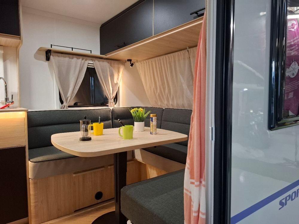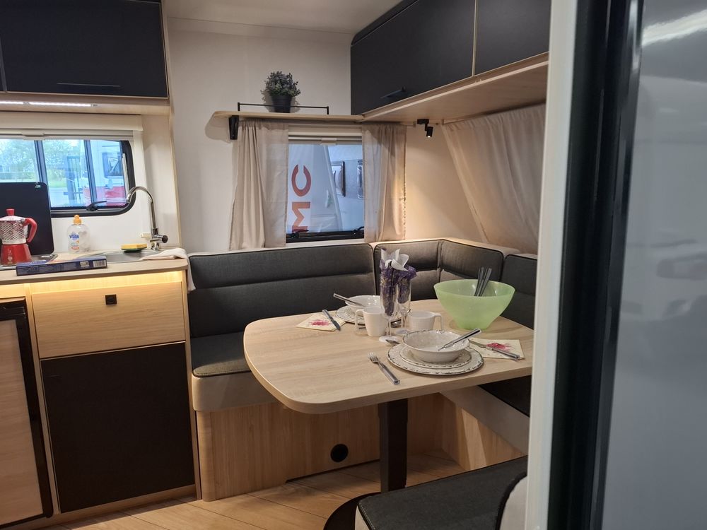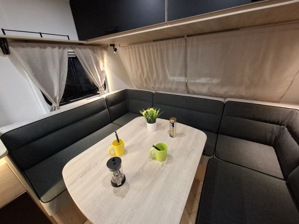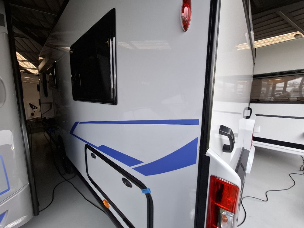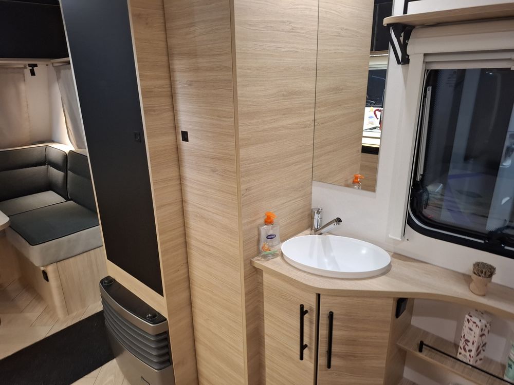 Caravane au design résolument dynamique, présentant un espace de vie très confortable dans des dimensions compactes : grand salon en U, Lit à la Française, équipement douche. Elle sera mise à disposition avec au choix, un auvent classique, un store de paroi noir posé ou un auvent gonflable (voir conditions en bas d'annonce).