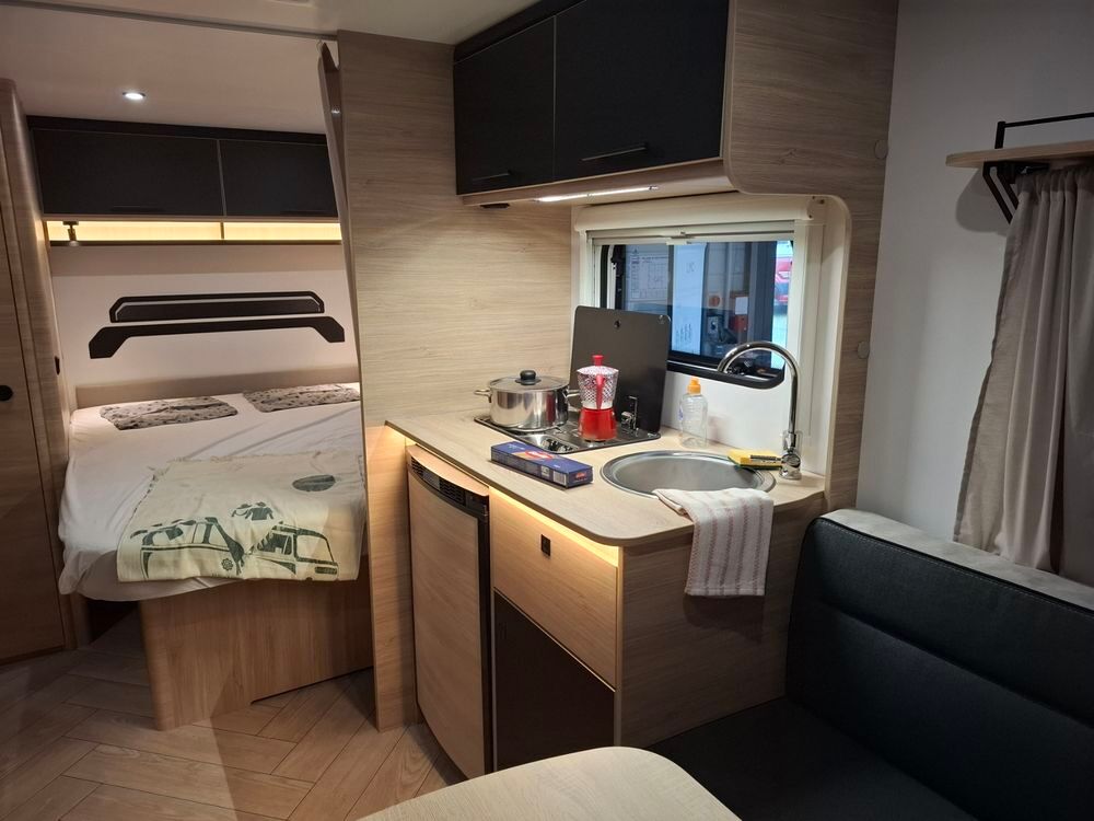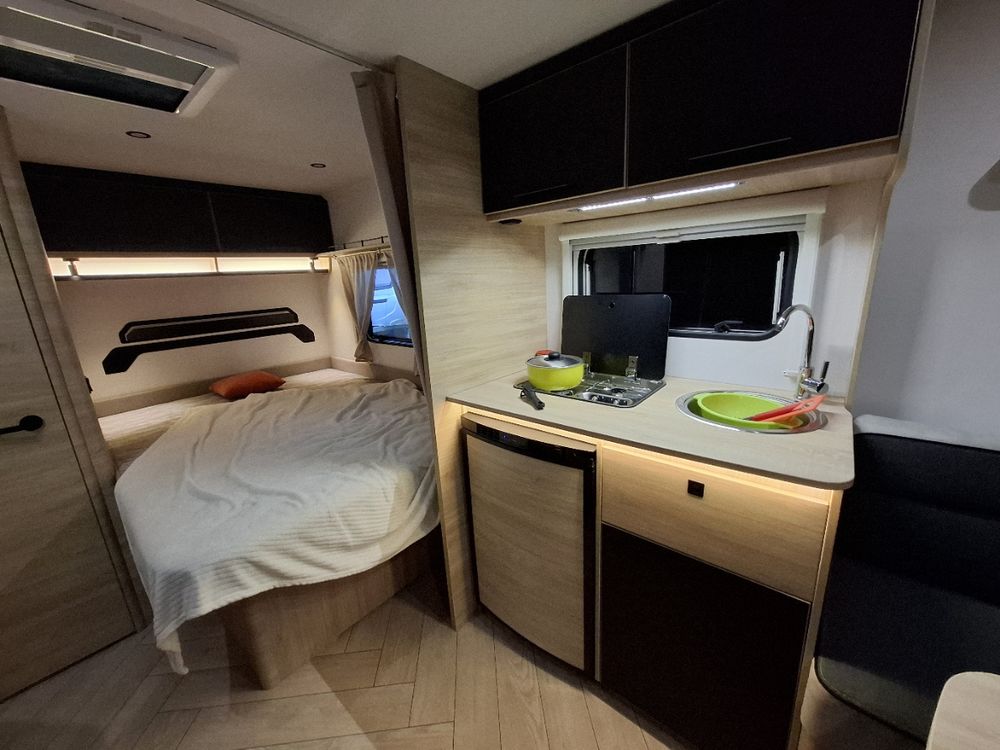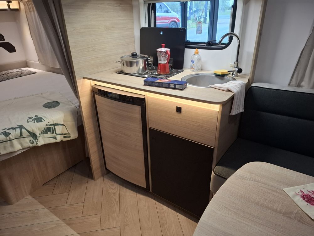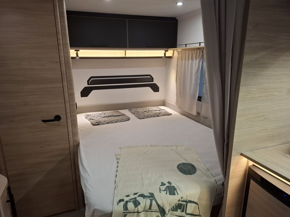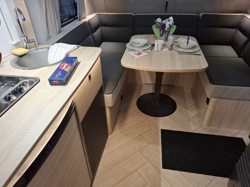 Caravane au design résolument dynamique, présentant un espace de vie très confortable dans des dimensions compactes : grand salon en U, Lit à la Française, équipement douche. Elle sera mise à disposition avec au choix, un auvent classique, un store de paroi noir posé ou un auvent gonflable (voir conditions en bas d'annonce).