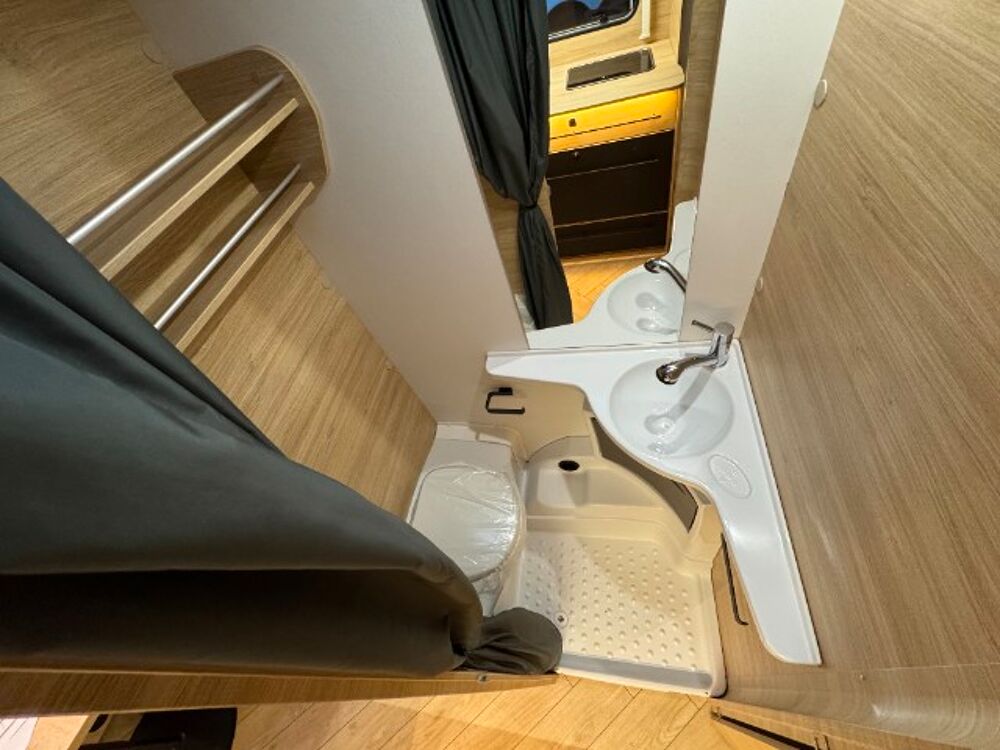 Sport Line, Baies ouvrantes double vitrage, Barres porte vélo supérieur + inférieur, Chauffage Truma 3400 (gaz), Eclairage intérieur LED, Eclaireur d'auvent LED, Pack cosy, Pack safety, Pack shower, Pré-équipement Climatiseur, Pré-équipement TV: prises antenne et 230V, Sangle 2ème bouteille gaz, Spots de lecture LED prise USB, Store combi occultant + moustiquaire, Tissu Sidney, Transformateur 230/12V avec disjoncteur