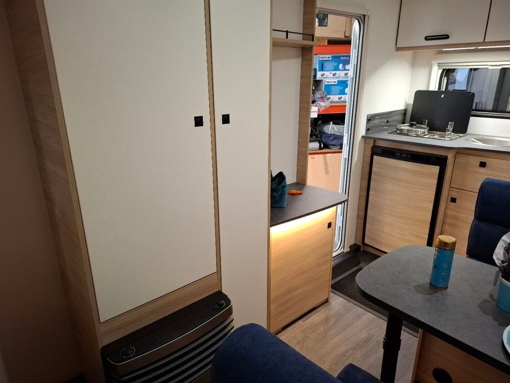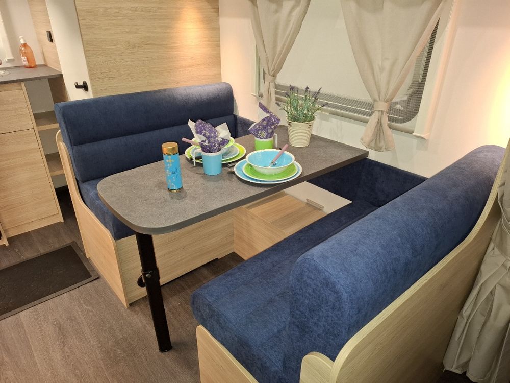 Malgré ses 2,10 m de large, elle dispose d'un lit central. Elle dispose d'un excellent niveau d'équipements et sera mise à disposition avec au choix, un auvent classique ou un auvent gonflable ou un store de paroi posé (voir conditions en fin d'annonce)