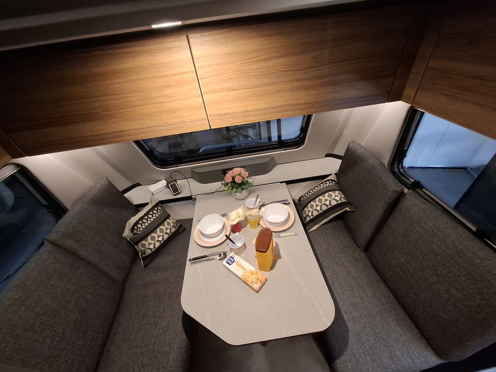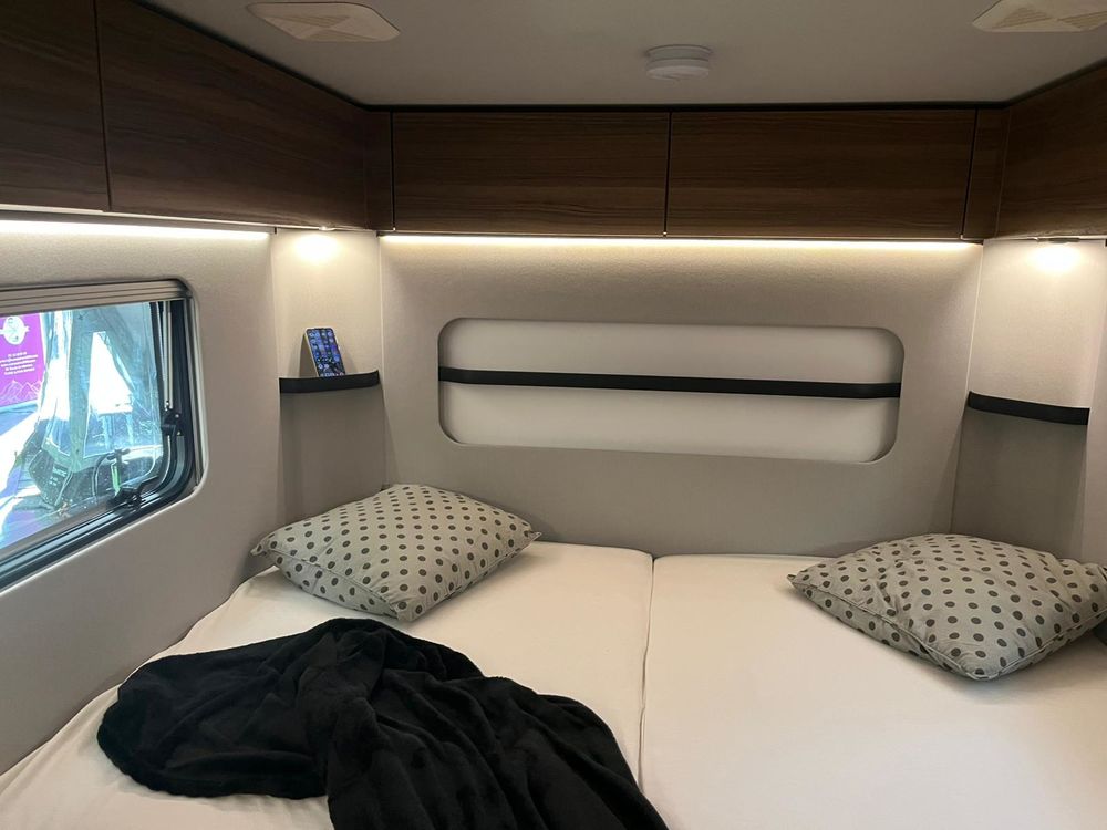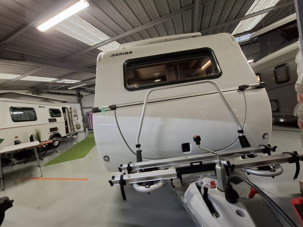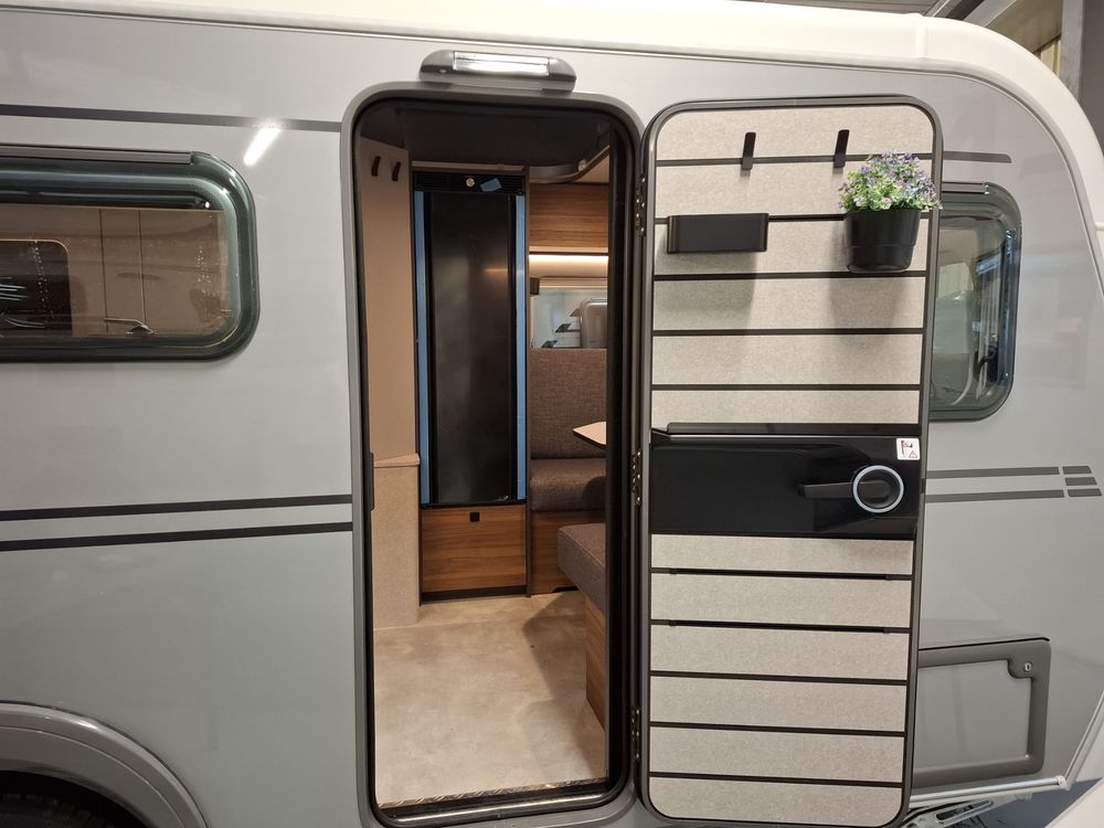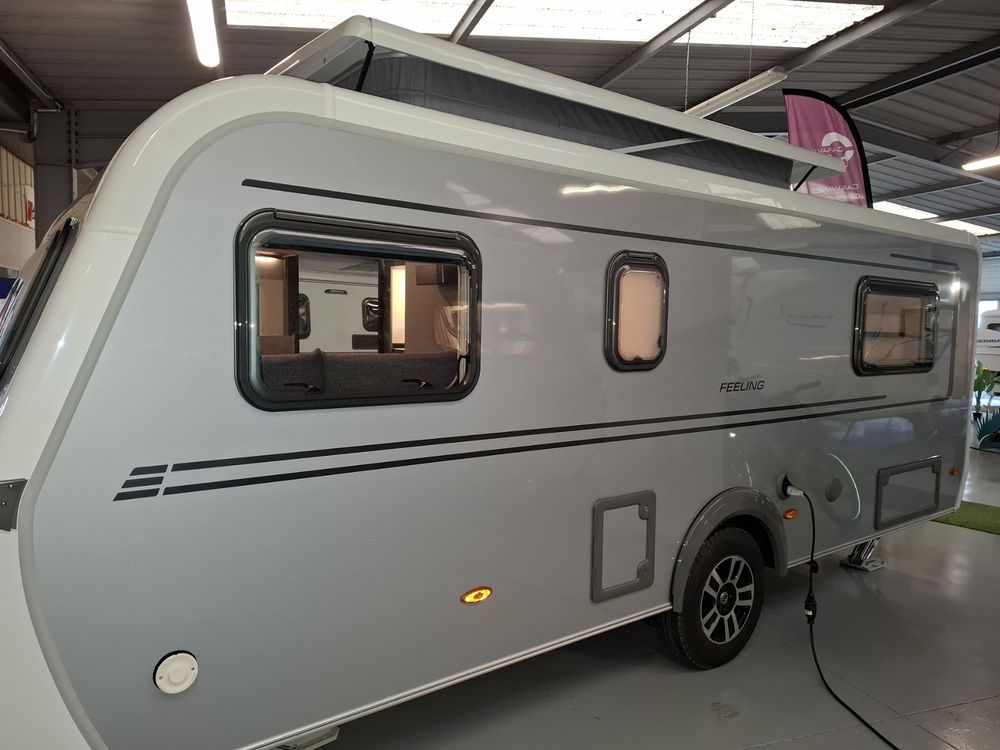 Nouveau design pour l'ERIBA FEELING, caravane aux dimensions compactes et au confort XXL : couchages de grandes dimensions et à l'accès facile, grand réfrigérateur à compression, équipements "douche", chauffage, eau chaude et porte-vélos sur timon. Pour la mise à disposition, nous offrons le store de toit posé. Laissez-vous emporter par la qualité de fabrication, le design chic et sobre et l'ensemble de ses fonctionnalités.